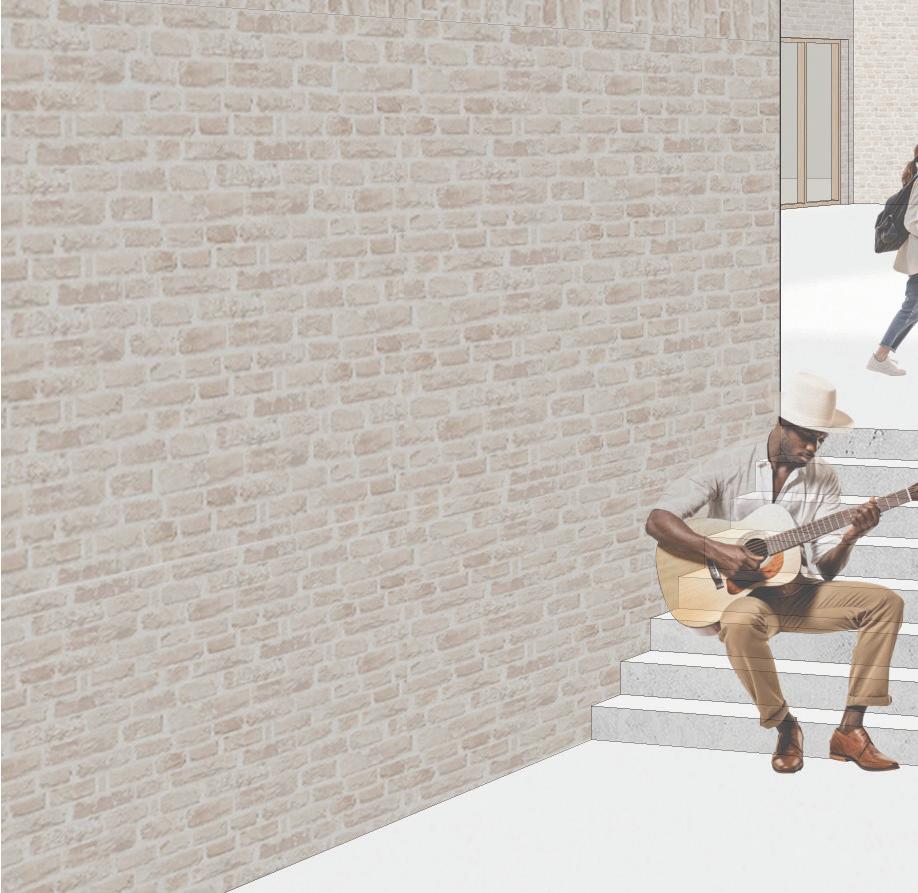 The design for the Huntsville Performing Arts Center is inspired by Huntsville, Alabama’s “Big Picture Plan”. This plan emphasizes supporting local arts and culture while enhancing the city’s reputation as an outdoor recreation hub. Located on a prominent corner between Big Spring Park and the Madison County Veterans Memorial, the site benefits from its proximity to these parks and to Washington Street, a designated greenway. To extend this green space, I created an organic system of outdoor seating and vegetation that seamlessly connects the alley to Clinton Street, reflecting the fluid movement of dancers and fostering a harmonious indoor-outdoor connection. The design of the interiors utilizes warm natural materials to enhance the organic theme, while the bright, white exterior and glazing provide a complementary contrast, highlighting the interior’s activities. The screen system on the building’s facade serves dual purposes: reducing solar gain and creating a dynamic interface that blurs the boundaries between indoor and outdoor spaces, with the vertical fins offering a captivating interplay of light and shadow throughout the day. This design integrates the themes of dance, nature, and urban context, creating a space that merges artistic expression with outdoor recreation, and serves as a new focal point for community engagement and cultural exchange.