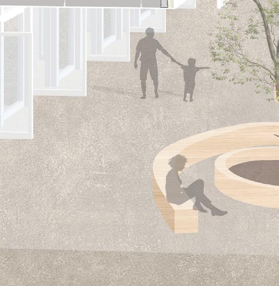 (RIGHT) GROUND FLOOR PLAN | The ground floor plan was designed to ensure the courtyard is accessible to the community and invites people inside. I refined the layout by breaking it into smaller sections, creating openings at key entry points and along main pathways. These openings are accentuated with overhangs from the upper mass to highlight the movement through the site.
