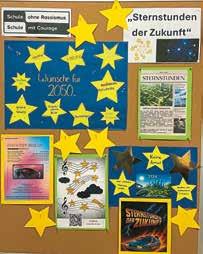 Im Rahmen der „Schule ohne Rassismus/ Schule mit Courage“ wurde in diesem Schuljahr an der FOS BOS Scheyern und der Georg-HippRealschule in Pfaffenhofen ein positiver Blick in die Zukunft geworfen: Unter dem Motto „Sternstunden der Zukunft“ wurden sowohl die bahnbrechenden Errungenschaften und Entwicklungen der Vergangenheit genauer beleuchtet als auch verschiedenste visionäre Zukunftsszenarien entworfen. In den einzelnen Klassen entstanden Bilder und Plakate rund um eine zuversichtlich gestaltete Zukunft. Eine Auswahl der Ergebnisse sowie einige der entstandenen Plakate sind während der Wochen gegen Rassismus im Foyer des Landratsamtes zu sehen.