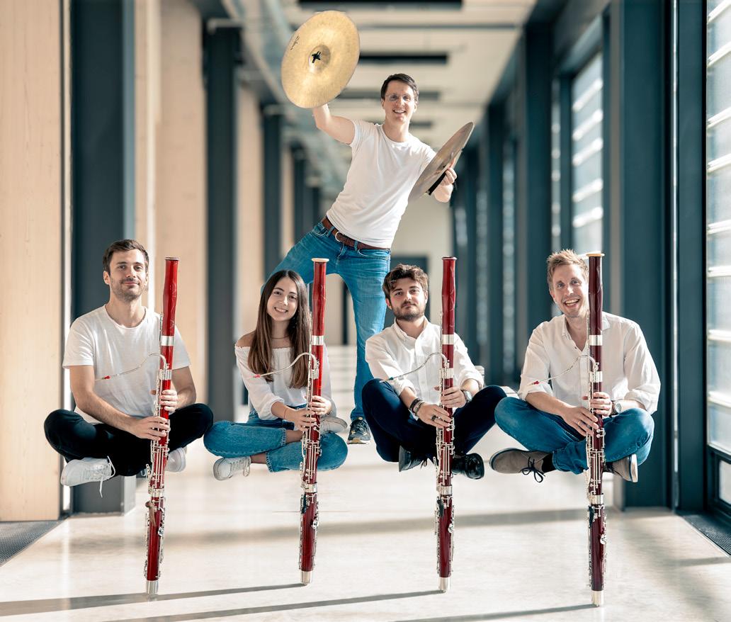 Die Solofagottisten der Münchner Philharmoniker, Raffaele Giannotti und Romain Lucas, die Akademistin Adriana Gonçalves und der Fagottist Johannes Hofbauer werden am Schlagwerk unterstützt vom Pfaffenhofener Michael Leopold, der zuletzt im Kultursommer 2025 zusammen mit Blechschaden hier auf der Bühne stand.