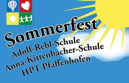 Die Adolf-Rebl-Schule, die AnnaKittenbacher-Schule sowie die Heilpädagogische Tagesstätte Pfaffenhofen feiern heuer wieder ihr legendäres Sommerfest. Es darf wieder gefeiert, gemeinsam gespielt, gebastelt, lecker gegessen und getrunken werden. Ein buntes Rahmenprogramm mit vielen Spielständen und Beschäftigungsmöglichkeiten ist geplant.