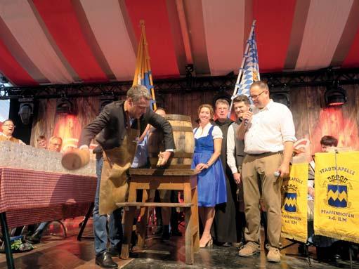 Bieranstich und offizielle Volksfesteröffnung durch ersten Bürgermeister Thomas Herker im großen Festzelt.
