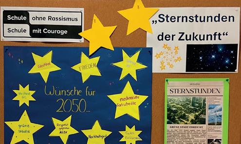 Im Rahmen der „Schule ohne Rassismus / Schule mit Courage“ wurde in diesem Schuljahr an der FOSBOS Scheyern und der Georg-HippRealschule in Pfaffenhofen ein positiver Blick in die Zukunft geworfen: Unter dem Motto „Sternstunden der Zukunft“ wurden sowohl die bahnbrechenden Errungenschaften und Entwicklungen der Vergangenheit genauer beleuchtet als auch verschiedenste visionäre Zukunftsszenarien entworfen. In den einzelnen Klassen entstanden Bilder und Plakate rund um eine zuversichtlich gestaltete Zukunft.