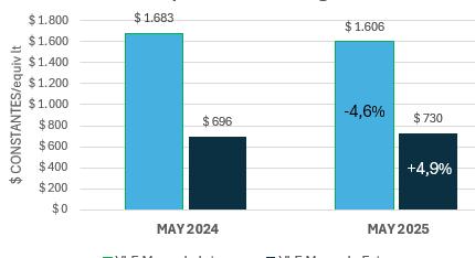 promedio de US$11.600/t, máximos de hasta US$17.500/t. El promedio de junio se ubicó % por encima del promedio de los últimos junios.