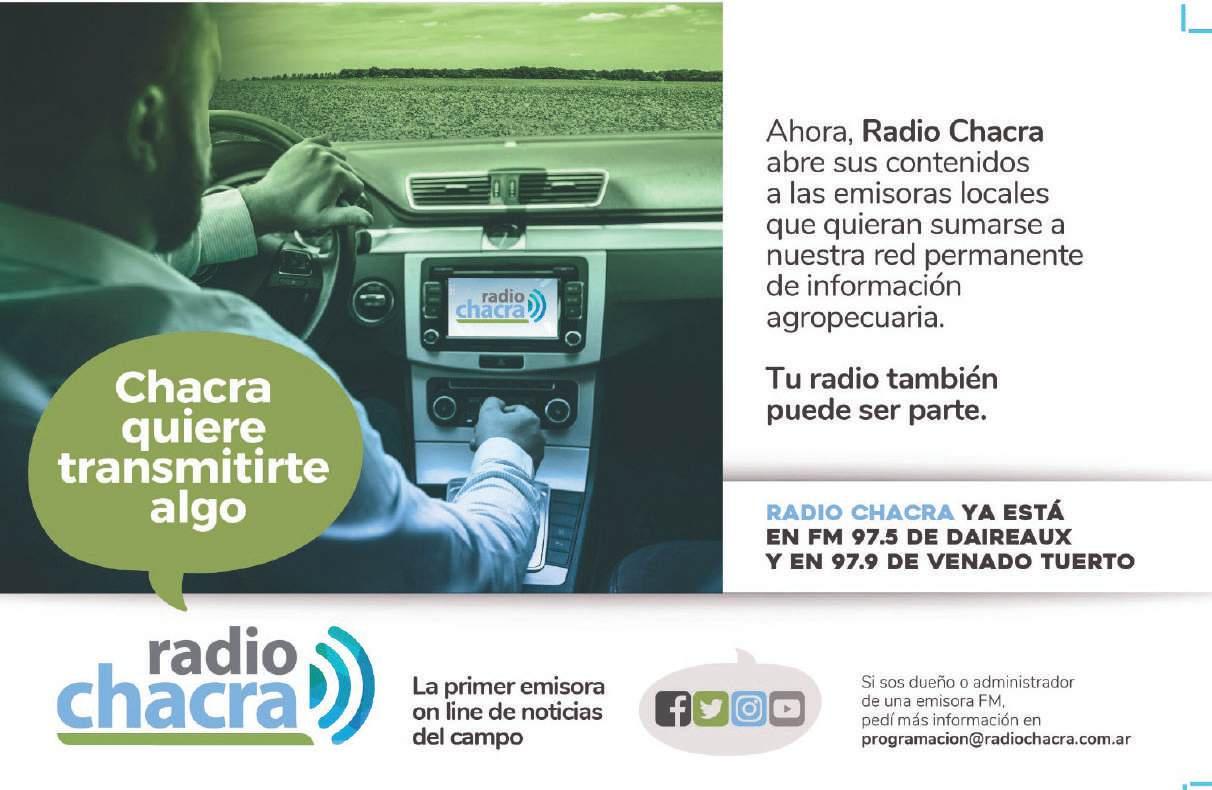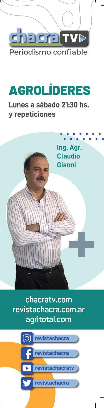 CHACRA & CAMPO MODERNO. Fundada en noviembre de 1930, es propiedad de The New Farm Company S.A., Francisco Narciso de Laprida 1481 - Vicente López, Buenos Aires, Argentina. Tel. 011-5353-5090 al 94; PUBLICACIÓN MENSUAL. Precio del ejemplar en todo el país: $ 300,00. Recargo por envío al interior: $ 16,00. SUSCRIPCIONES. En el exterior con franqueo vía aérea certificado. Países limítrofes (Bolivia, Brasil, Chile, Paraguay, y R. O. del Uruguay) y Perú: 1 año (12 números) USD 170 -Resto de América: USD 250- Europa: USD 270 - Asia, África y Oceanía: USD 270- Distribuidora en Capital Federal y Gran Buenos Aires: Huesca-Distribuidora de Publicaciones S.A., Aristóbulo del Valle 1556, Cap. Fed. Distribuidor en el interior del país: Transpres S.A., Isabel La Católica 1371, Cap. Fed. Registro Nacional de la Propiedad Intelectual 512 1483. Impresa en MARIANO MAS S.A. - México 649/651, San Telmo. Buenos Aires, Argentina - Teléfono: (+54 11) 4331-5764. Este medio se encuentra auditado por el Instituto Verificador de Circulaciones (IVC). PRINTED IN ARGENTINA. ISSN 0325-7932. Editor Responsable: RUBÉN O. BARTOLOMÉ. BUENOS AIRES - NOVIEMBRE 2025 - AÑO 95 EDICIÓN Nº 1140