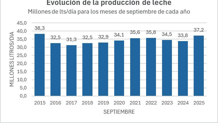 Entrada la primavera el productor se encuentra con una inusual disponibilidad de pasto y está entregando mayor volumen de leche que las últimas primaveras. Las industrias medianas y pequeñas atadas al mercado interno quisieran pagar menos, pero la gran industria exportadora repite precios y todos copian.