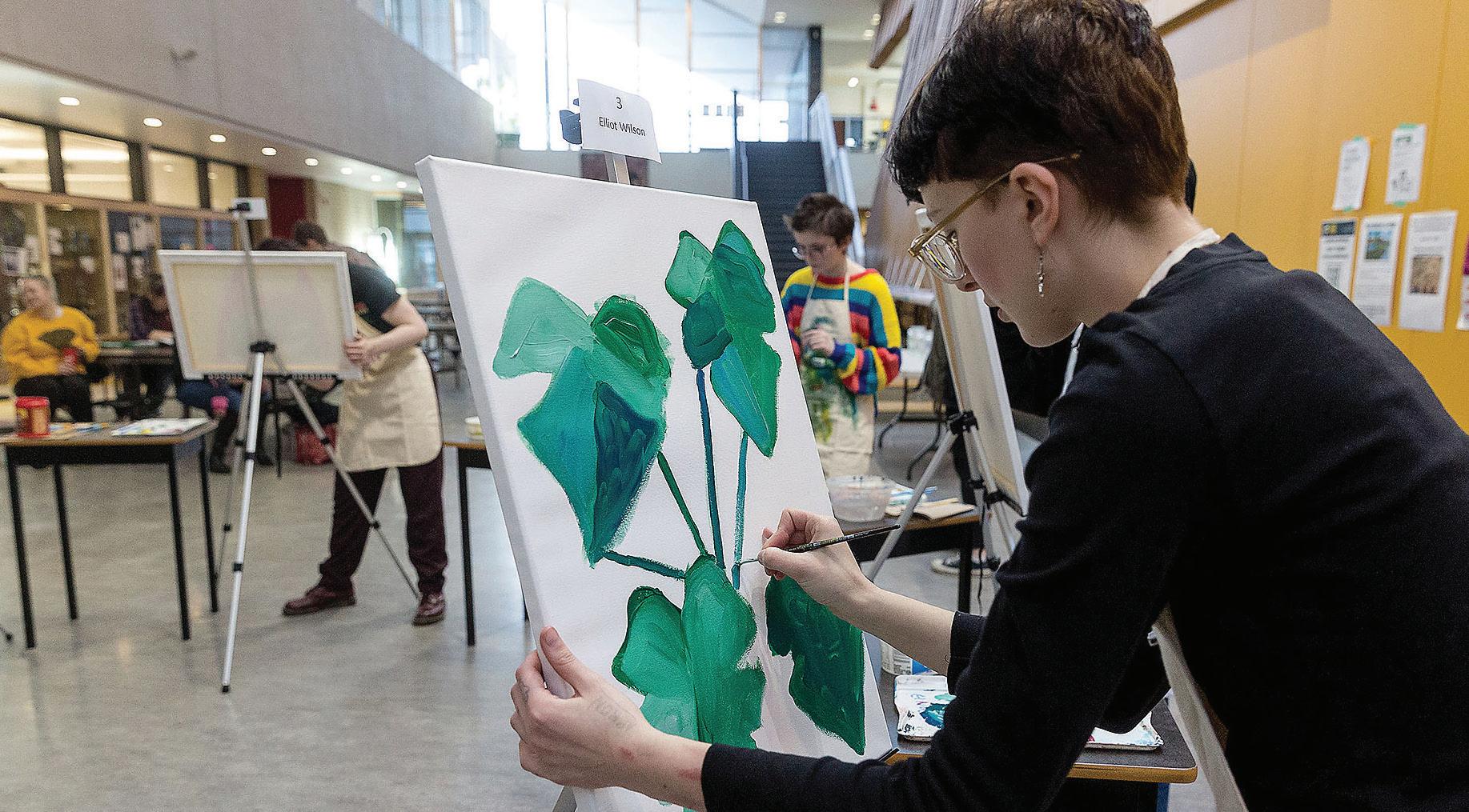 ART BATTLE elliot Wilson worked on their painting during the first round of competition at the art battle sD #57 youth tournament at Duchess Park secondary last week. nine artists began the battle before four finalists were chosen to move on to the district art battle against artists from Kelly road secondary, PGss, and the centre for learning alternatives.