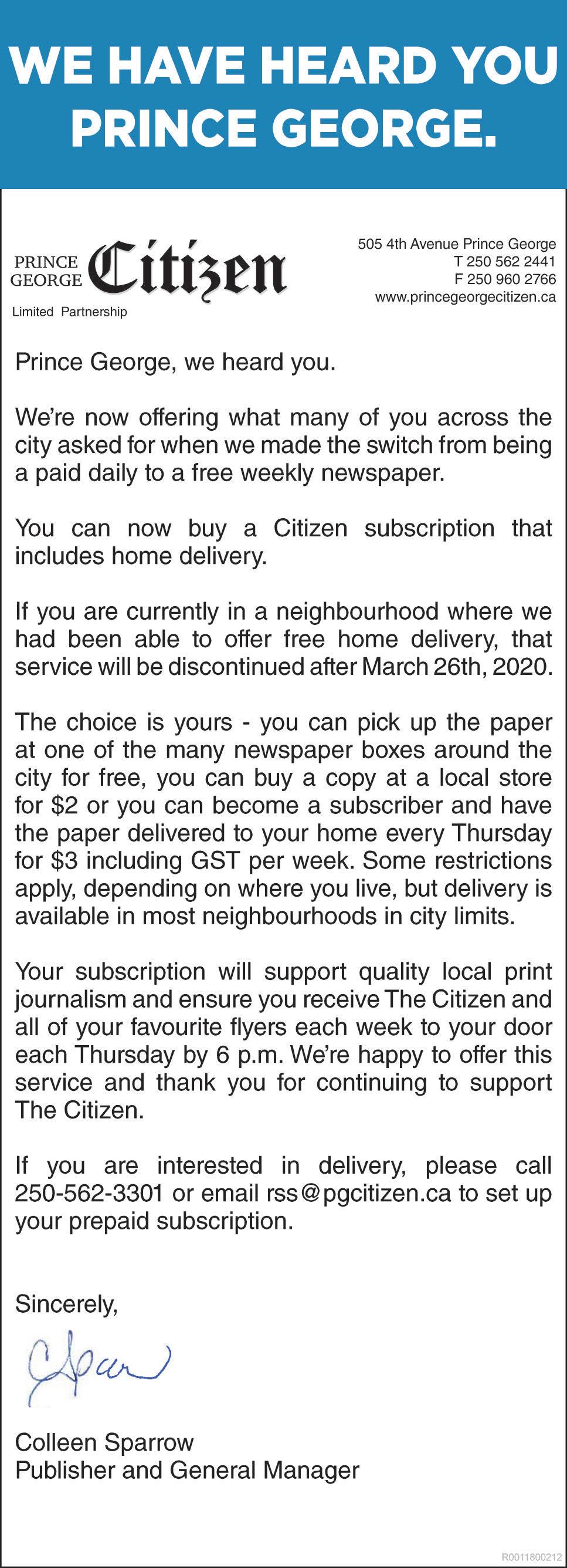 Glacier Media, the publicly-traded company that owns The Citizen, has announced it will leave the publisher and general manager position vacant for the time being, with Peter Kvarnstrom, the president of community media for Glacier, overseeing operations.