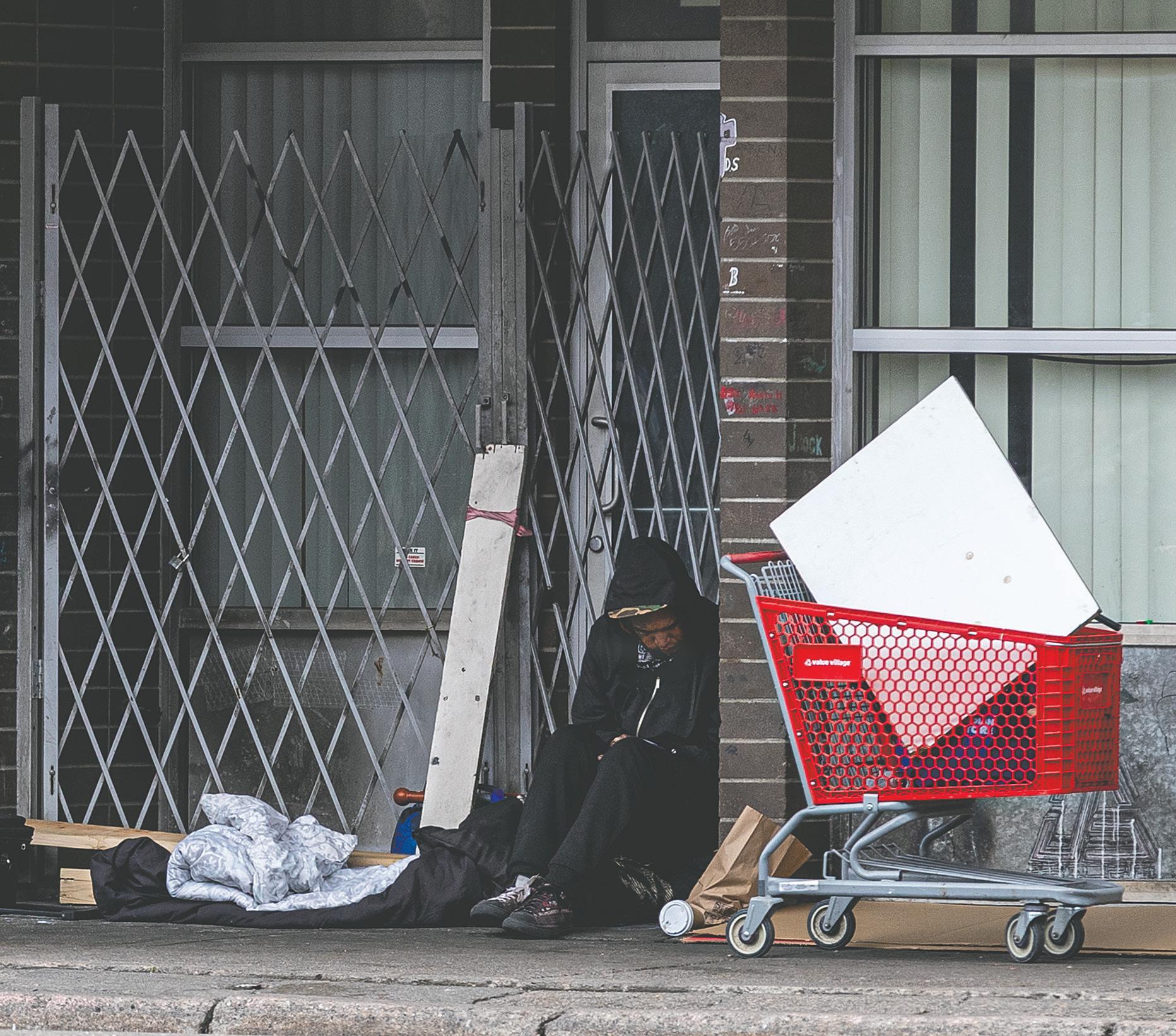 A person takes shelter against a downtown storefront in this photo from the summer of 2024. AWAC is calling on city council to step up when it comes to addressing issues like homelessness and crime.