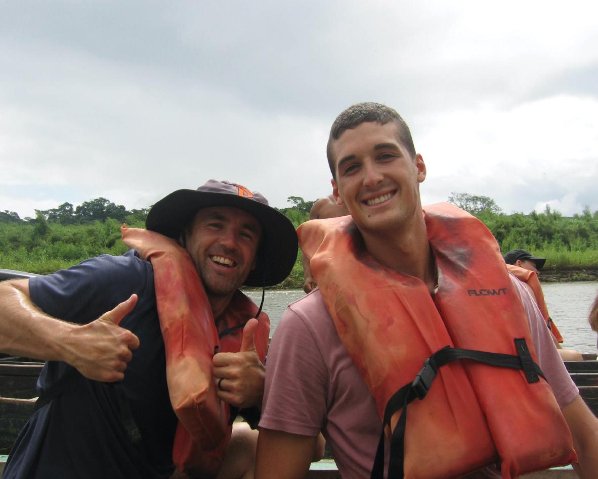From left to right: Holm and Crane smile while on a 40-minute canoe ride through a river in Panama. This ride took them to visit an indigenous tribe.