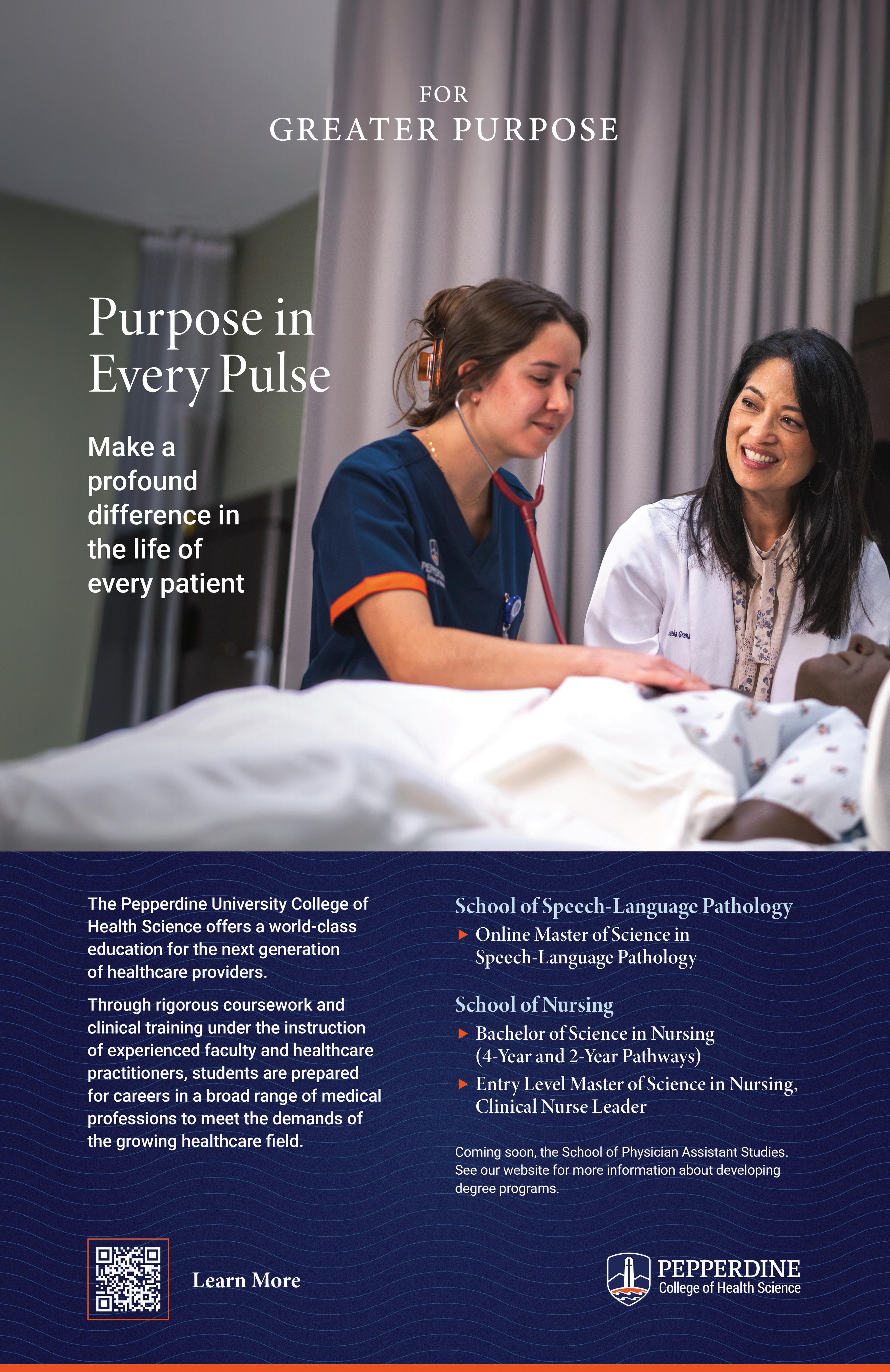 “Pepperdine Graphic Media (PGM) is an editorially independent student news organization that focuses on Pepperdine University and the surrounding communities. PGM consists of the digital and print Graphic, a variety of special publications, GNews, Currents Magazine, social media platforms and an Advertising Department. These platforms serve the community with news, opinion, contemporary information and a public forum for discussion. PGM strengthens students for purpose, service and leadership by developing their skills in writing, editing and publication production, by providing a vehicle to integrate and implement their liberal arts education and by developing students’ critical thinking through independent editorial judgment. PGM participates in Pepperdine’s Christian mission and a rmations, especially the pursuit of truth, excellence and freedom in a context of public service. Although PGM reports about Pepperdine University and coordinates with curricula in journalism and other disciplines, it is a student (not a University) news organization. Views expressed are diverse and, of course, do not correspond to all views of any University board, administration, faculty, sta , student or other constituency.” Email: peppgraphicmedia@gmail.com