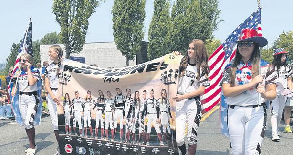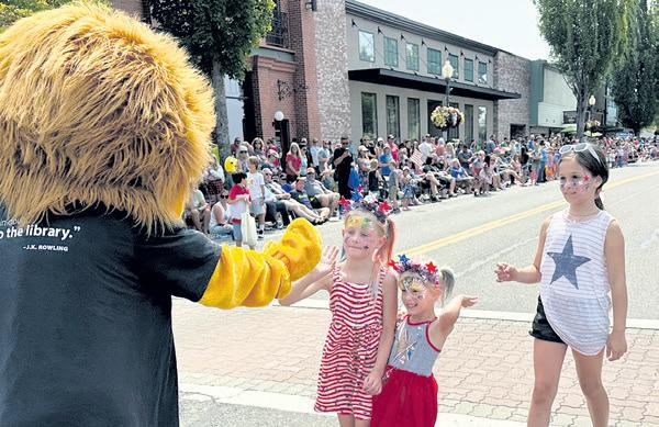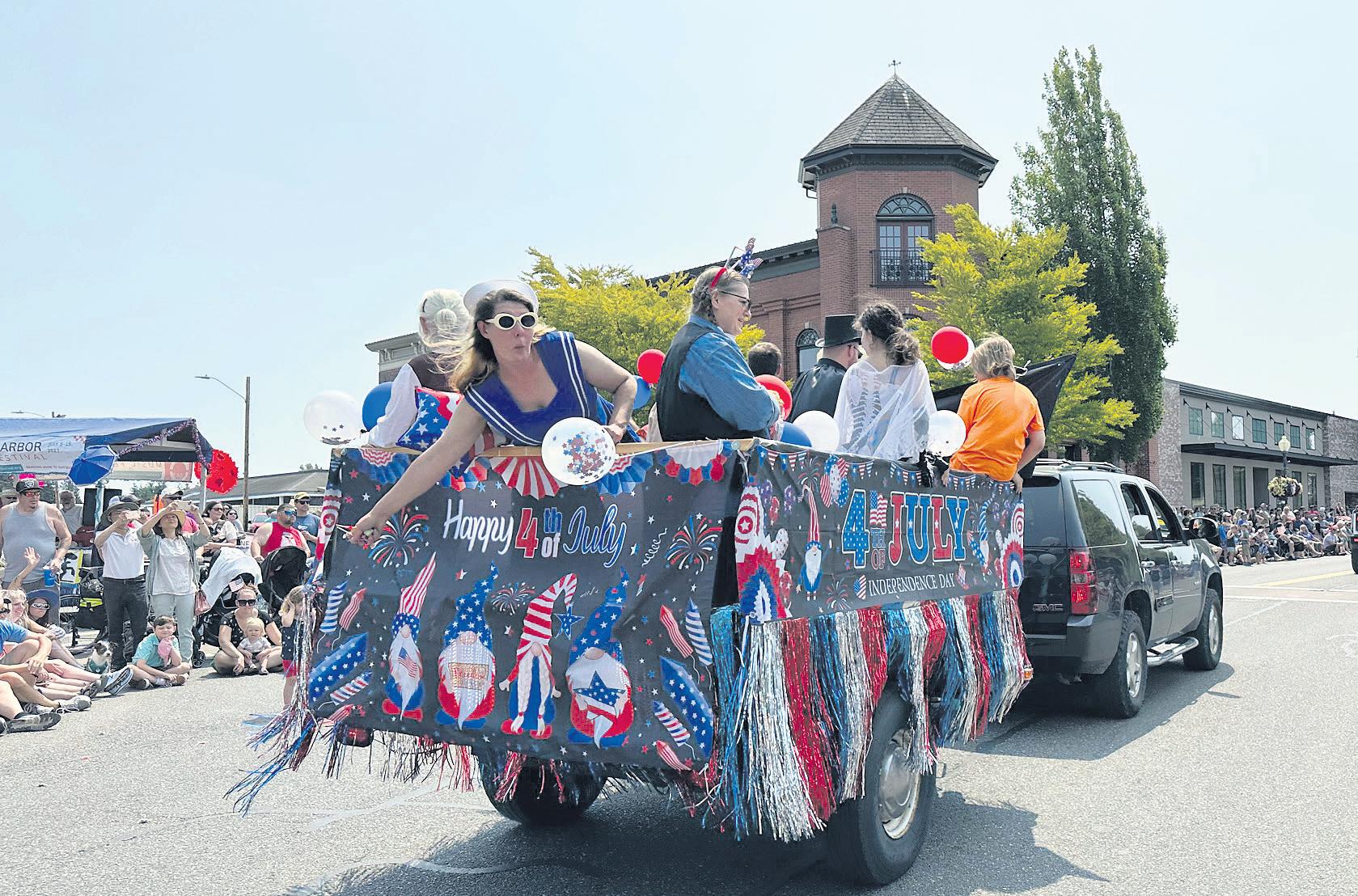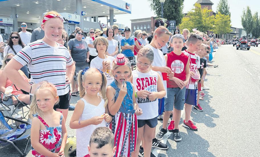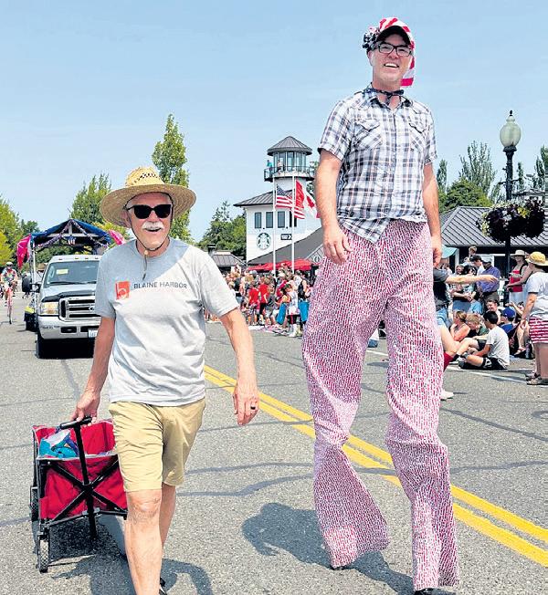 s Mikael Kenoyer throws candy from the Blaine Community Theater float during Blaine’s Old-Fashioned Fourth of July parade along Peace Portal Drive. Thousands of people donning red, white and blue attended the Independence Day celebration sponsored by Blaine Chamber of Commerce in downtown Blaine. Festivities included a pancake breakfast, car show, street fair, live music and book sale. See more Fourth of July photos on pages 8-10.