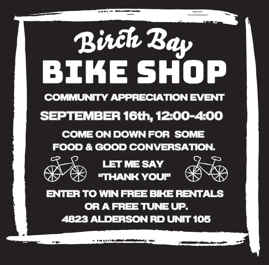 Birch Bay Bike Shop Community Appreciation Event: Saturday, September 16, noon–4 p.m., Birch Bay Bike Shop, 4823 Alderson Road, unit 105. Food, conversation, drawings. Info: birchbaybikeshop.com.