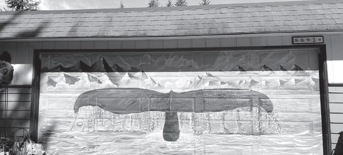 Former Point Roberts resident Edward Buendia painted idyllic Pacific Northwest imagery on Blaine Animal Hospital’s garage doors earlier this summer. Veterinarian Christine Carlson commissioned Buendia for the new painting titled “Whale Tail” when she