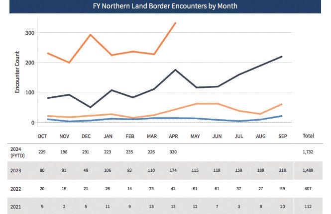 In 2021, U.S. Border Patrol had 112 encounters in the Blaine sector area. That number grew to 407 in 2022, 1,489 in 2023 and is at its highest with 1,732 encounters so far in 2024, according to CBP data.