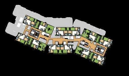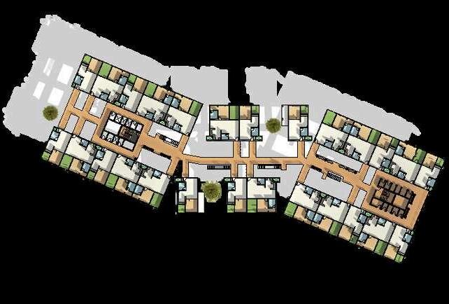 THE GROUND FLOOR OF THE BUILDINGS CONSISTS OF THEDUPLEX APARTMENT UNITS THE APARTMENTS ARE SEPARATED BY GREEN AND SOCIAL POCKETS OF SPACES THAT ALLOWS RESIDENTS TO USE FOR VARIOUS ACTIVITIES