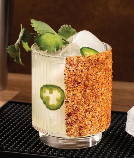 To rim glass, brush Tajín Chile Lime Sauce on side of glass then dip into Tajín Clásico Seasoning to coat. Set aside.