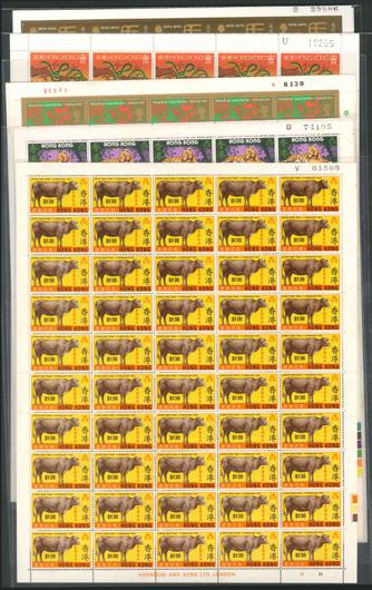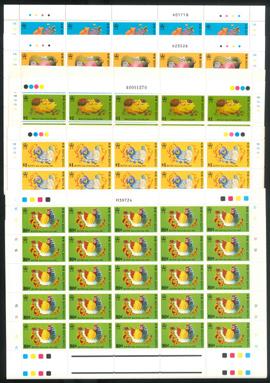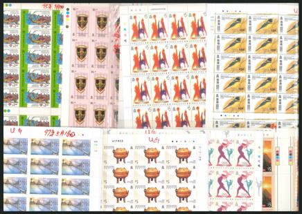 1992-1996 Lunar New Year Issues, from Year of the Monkey to Year of the Rat, in complete full sheets of thirty two, UM (320). 第二輪猴年至鼠年生肖郵票小版張