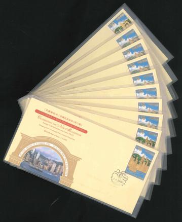 中國集郵總公司承製2001年北京申辦2008年奧運會成功紀 念套裝七套,每套含國家郵政局,香港郵政及澳門郵政局 共同發行小全張特別版 HK$500