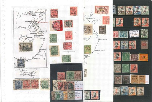Foreign Post Offices in China: 1900//1920’s Miscellany, total 109 stamps, including French & German, also five mint “China” KGV stamps (109). 外國在華客郵新舊票一組一百零九枚 HK$500
