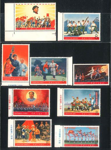 1980.01.15 (January 15) Selected Paintings of Qi Baishi, 1st issue of eight stamps in imprint blocks of eight, UM (64).