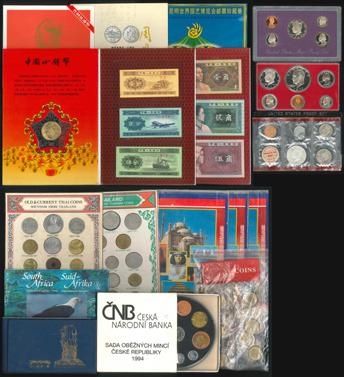 World-wide: 1953//1989 Selection of Coins and Proof Sets, including USA 1977 and 1988 mint proof sets, other countries include Czech Republic, Egypt, Singapore, South Africa, Thailand and Vatican, also small group of PRC bank notes and commemorative coins.