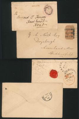 Great Britain: 1847.02.14 (February 14) Lovely Small Envelope Sent on Valentine’s Day to Kent, also 1907 QV halfpenny postal envelope from London to Huddlesfield (2). 甚早期英國小型封寄根德郡,寄出日期為1847年7月14日