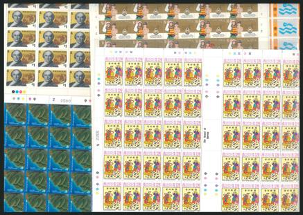 1978//1991 “T” Series Selection, group of over fifty issues, mostly in blocks of four, some larger multiples, UM (00+). T新票方連一組超過五十品種