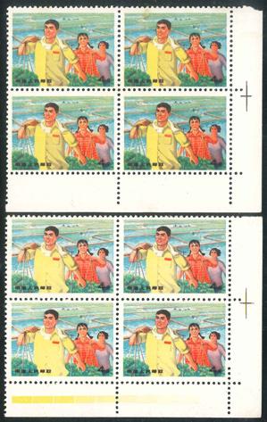 T44齊白石作品選第一組八枚,帶色版角位四方連