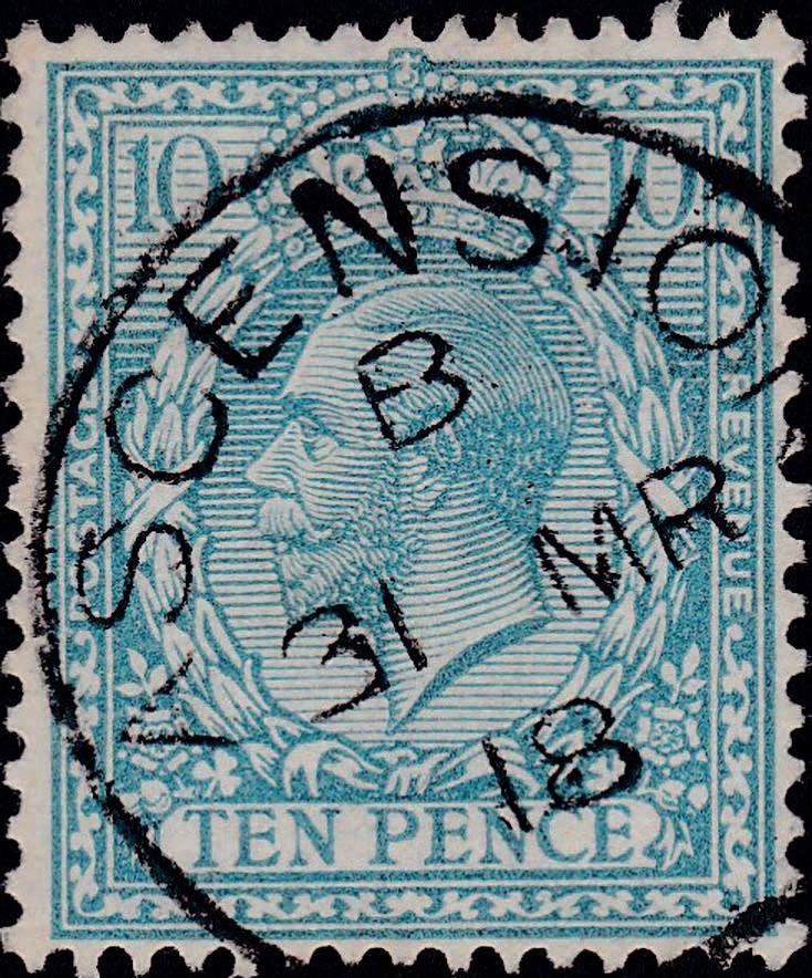 1908 1/- damaged Frame & Crown variety VFM SG9A.