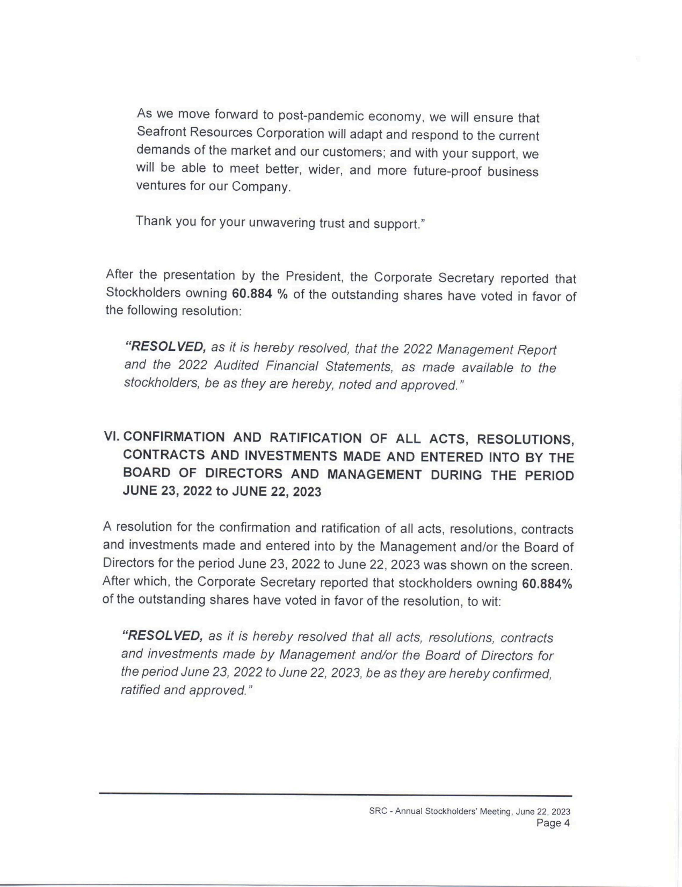 APPROVED 2023 ASM of Seafront Resources Corporation