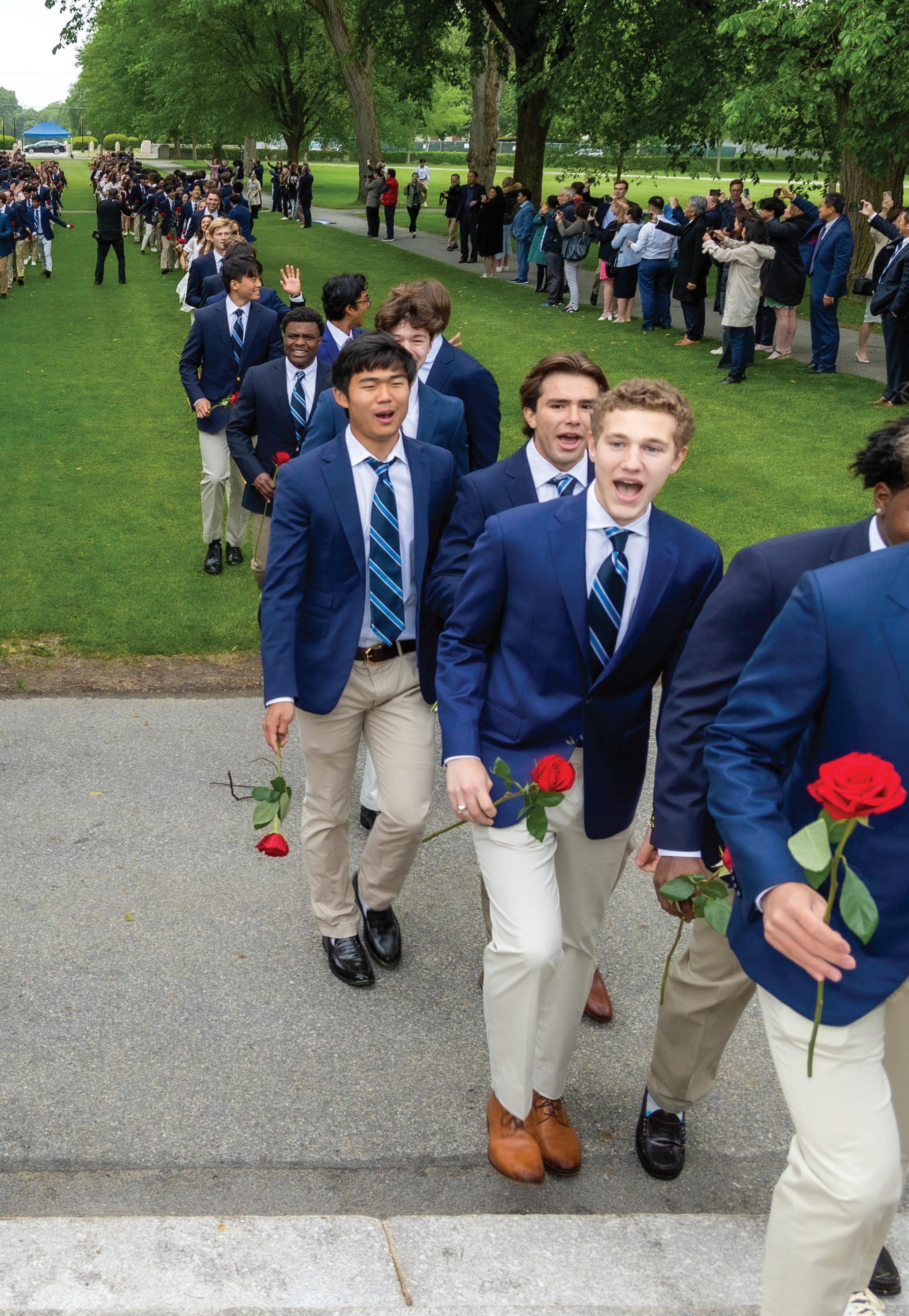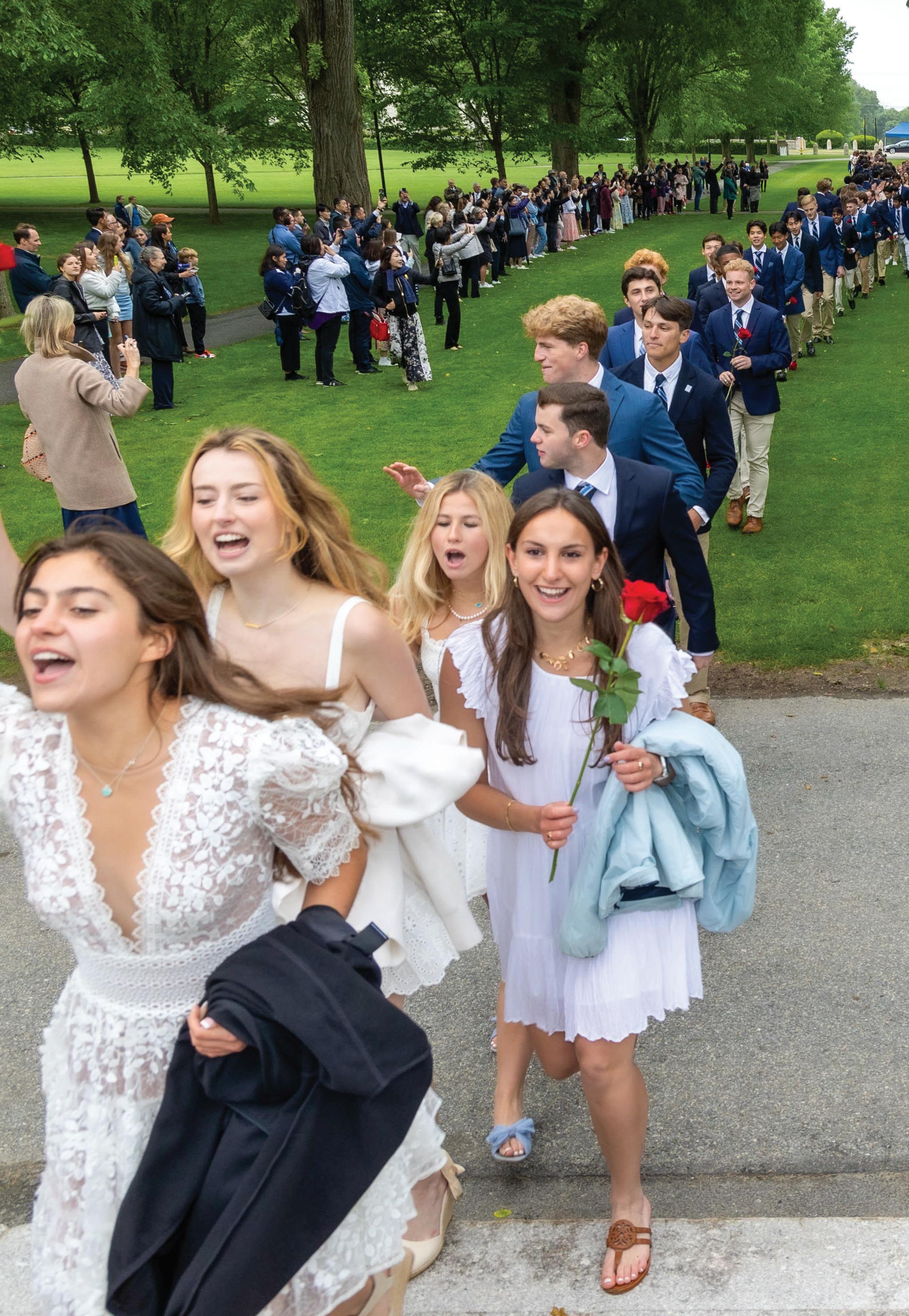 Andover’s 245th graduating class celebrates this past June as they walk along the Chandler-Wormley Vista. Read more about this recently named part of campus on page 11.