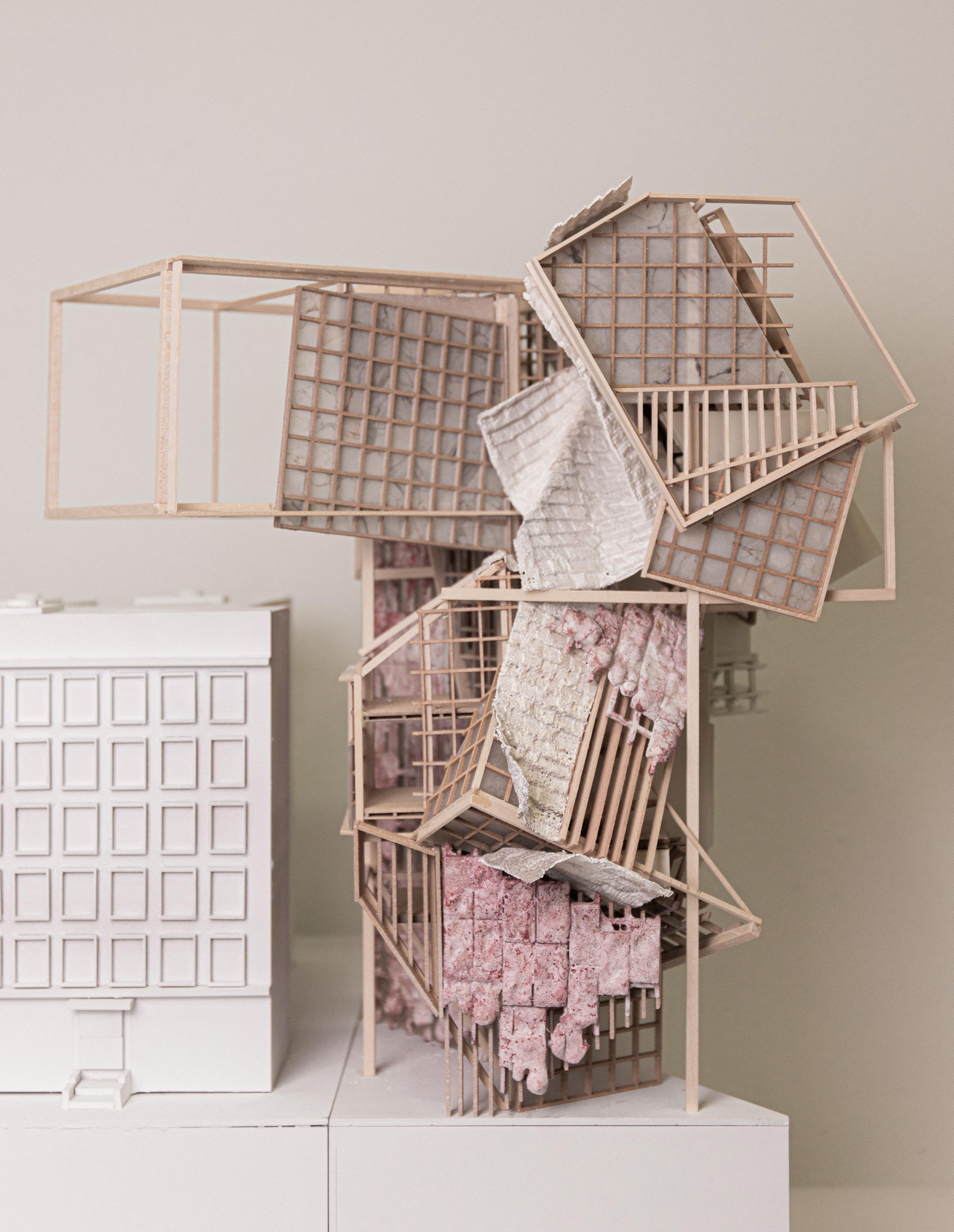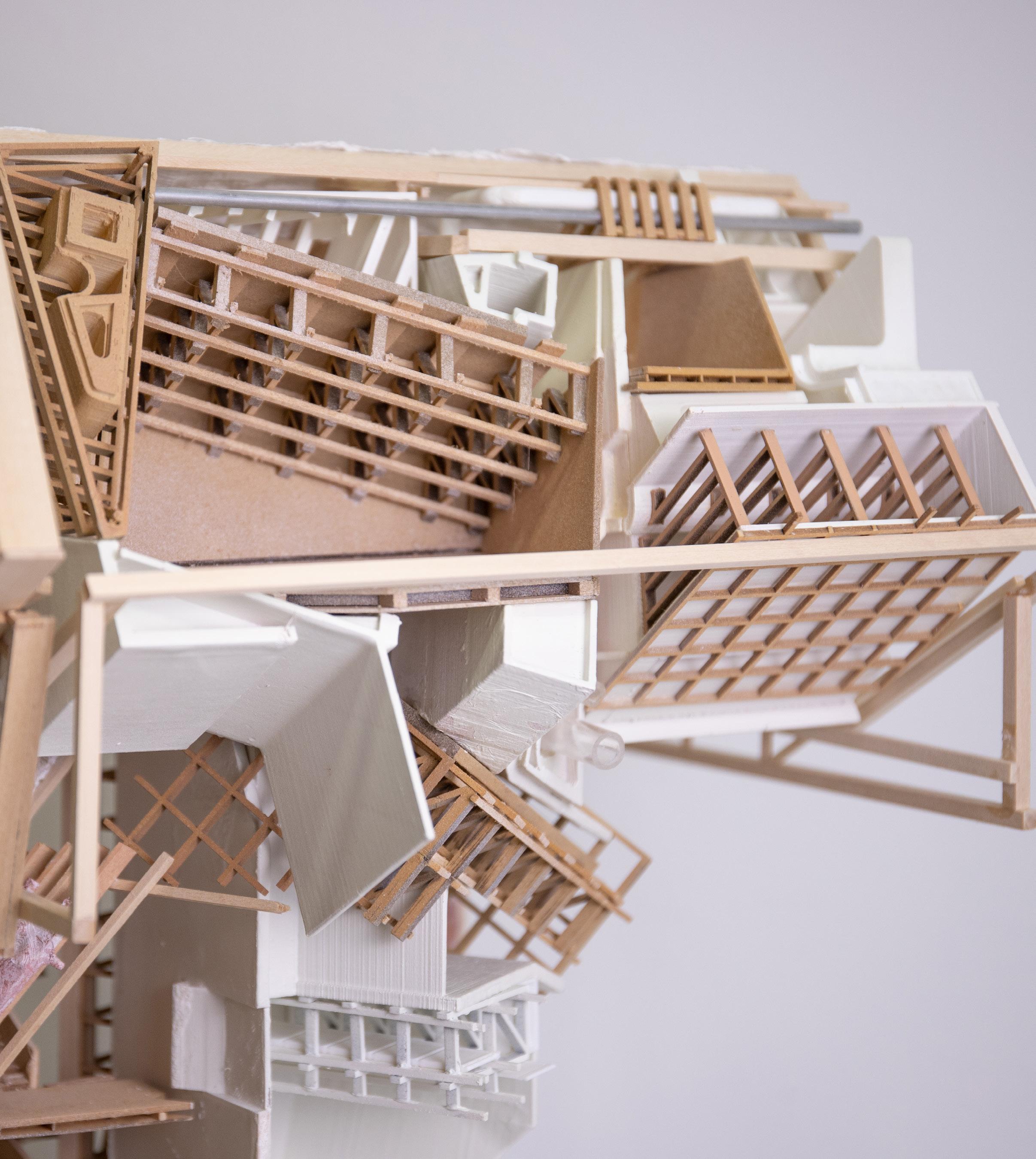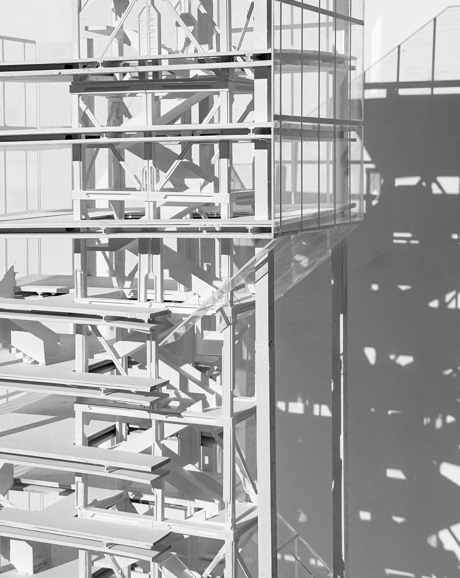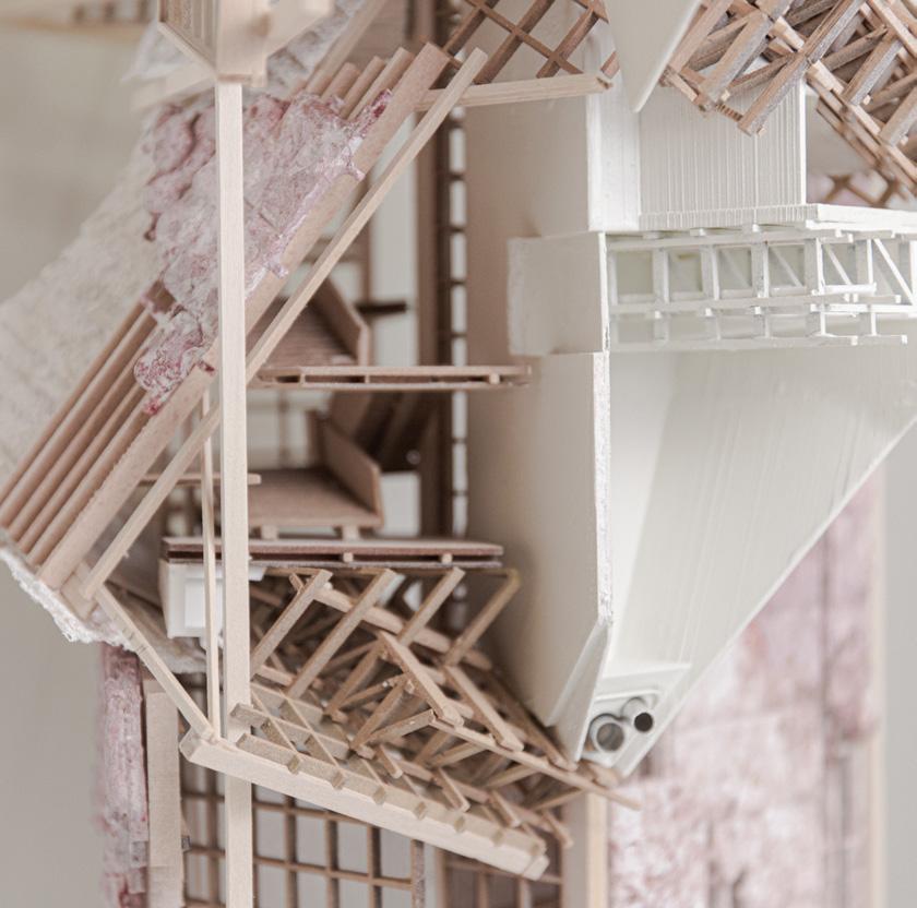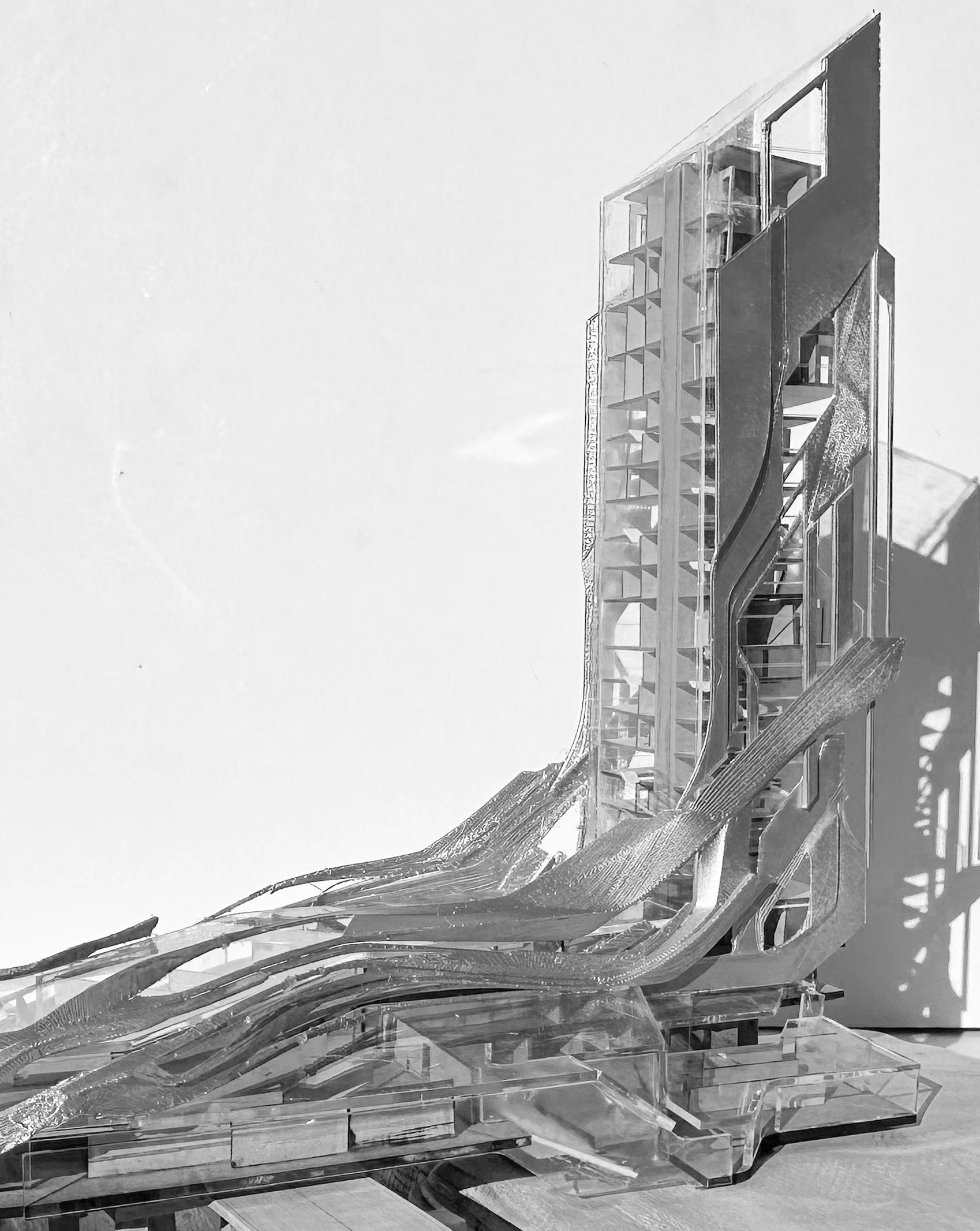 The selected work delves deeper into the structural aspects of the Tuplet Tower, offering detailed insights into the plan, sections, and interior/exterior section details, alongside physical models at various scales. It showcases how the project's conceptual underpinnings are manifested in its physical form, highlighting the architectural techniques employed to achieve a seamless blend of function and aesthetic, in service of musical and community integration.