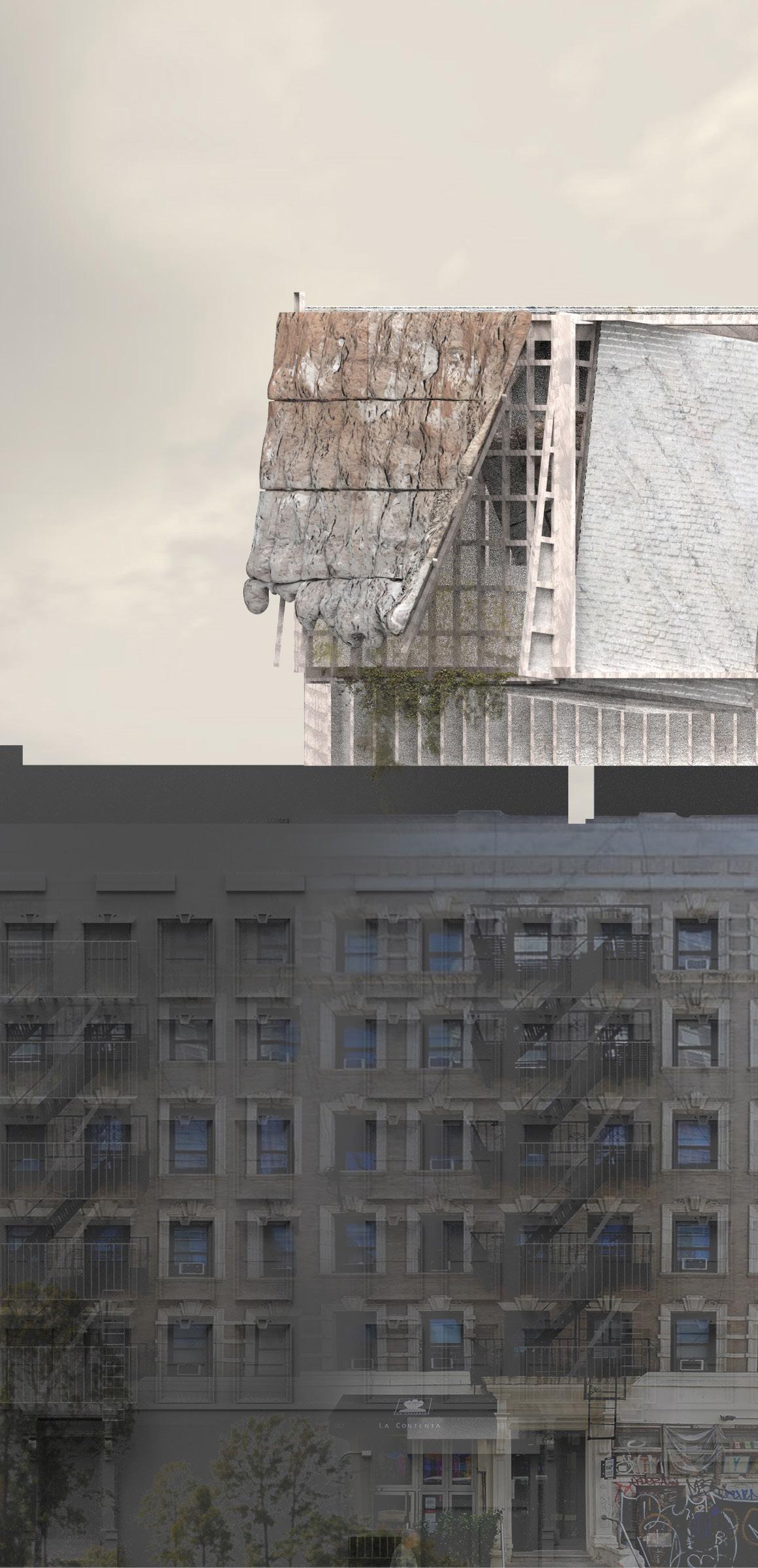 The significance of this architectural intervention extends beyond the mere physical transformation of spaces. By treating the portico as a threshold that is neither fully indoors nor outdoors, the program encourages a reevaluation of how architectural spaces can mediate between human habitation and the natural world. This perspective is further enriched through the use of computational design tools, which enable the creation of intricate and textured surfaces that respond dynamically to environmental conditions. These technological interventions allow for the accelerated visualization of weathering, offering a tangible representation of the temporal and ecological narratives inscribed in the fabric of the buildings.