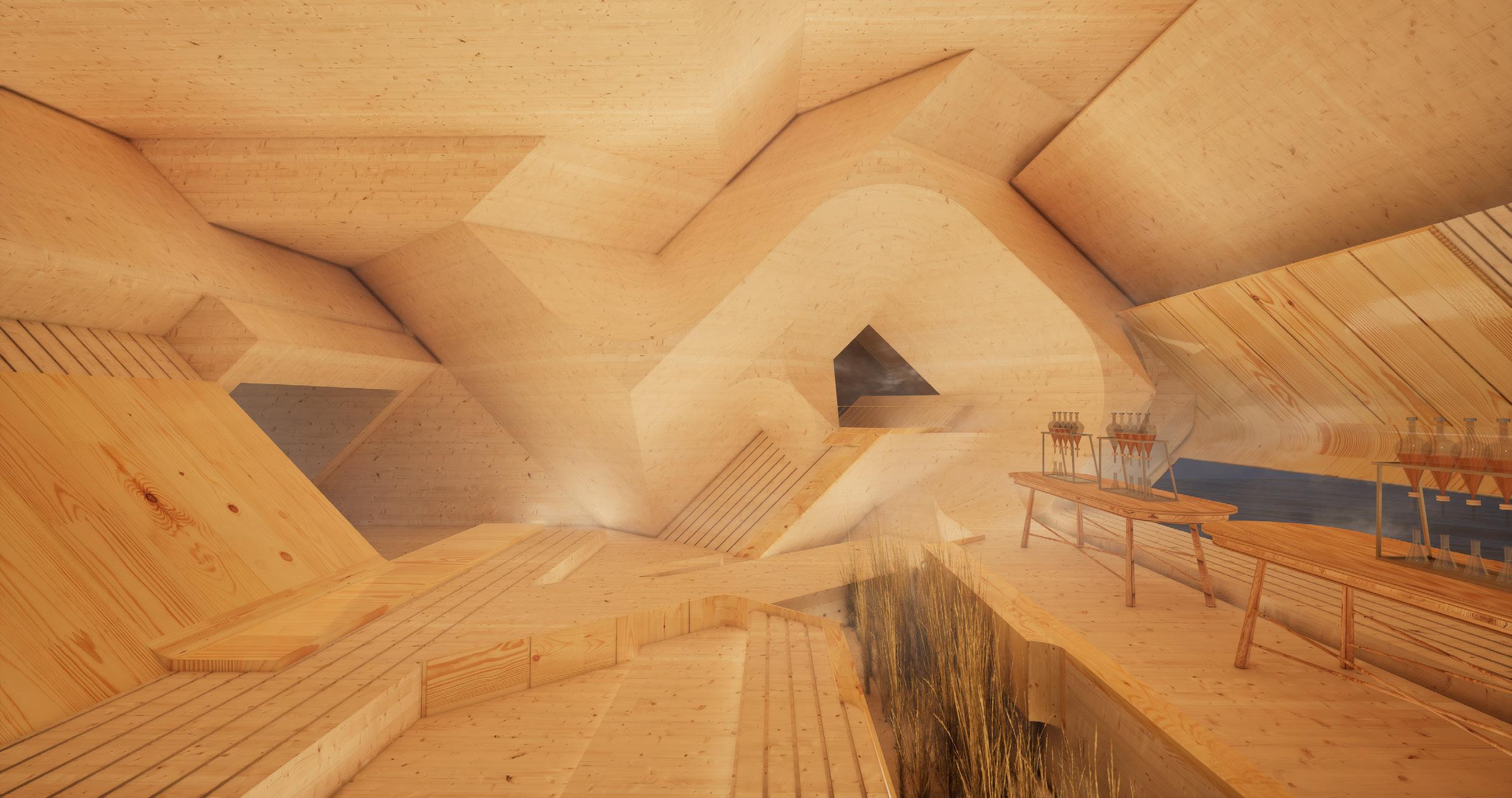 In architecture, the sublime is not merely an aesthetic pursuit but an existential encounter—one that overwhelms, astonishes, and elevates human perception beyond the ordinary. This project manifests the sublime through two fundamental principles: the sculptural presence of its wooden structures and the profound dialogue between nature’s vast power and the emotional intensity of designed space.