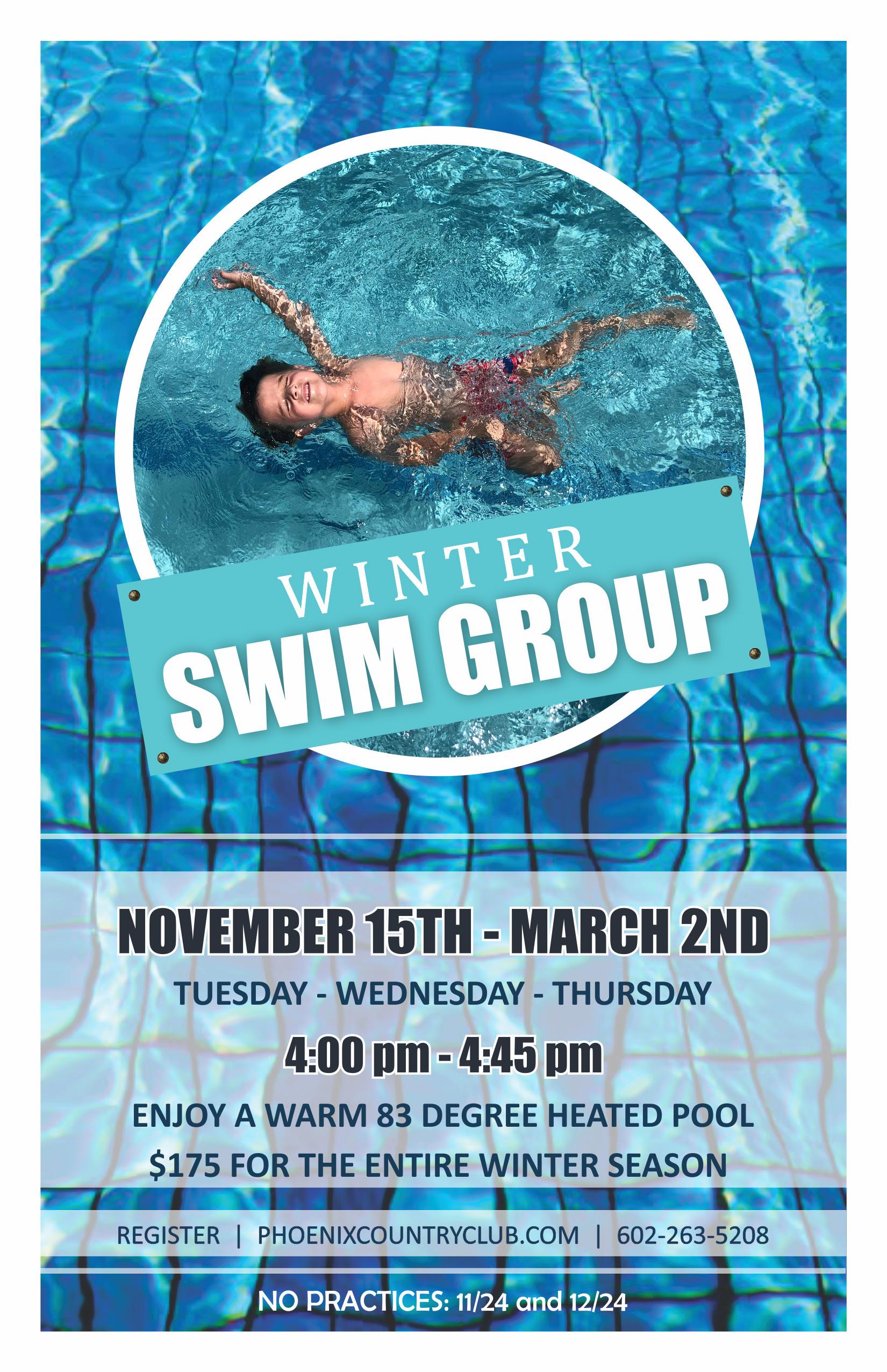 Children’s Winter Swim Team begins November 15th. Practices are Tuesday, Wednesday and Thursday from 4:00-4:45 PM. No Practices November 24th, Great way for children to stay up on their conditioning and stroke mechanics.