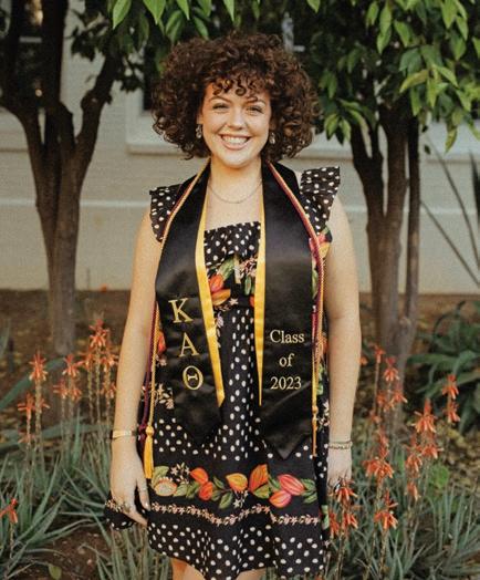 In May of 2023, Sophia Corridan graduated summa cum laude from Barrett, the Honors College at ASU, with a bachelor’s of science in political science, a minor in urban planning, and a certificate in applied business data analytics. She successfully defended her honors thesis, “It Takes A Village: The E cacy of Phoenix’s Urban Village Model as a Mechanism for Citizen Participation in Urban Planning and Governance.” In addition to her honors research, Sophia served two terms as the VP of Diversity, Equity, and Inclusion for her sorority, Kappa Alpha Theta. She also served as a junior fellow for the School of Politics and Global Studies, worked as a Barrett upper division mentor, worked with the Chandler Chamber of Commerce as a public policy intern, and came back to PCDS to coach the Speech & Debate team for a year. After graduation, Sophia is spending the summer working on a ranch in Wyoming and will be living her cowgirl dreams. After