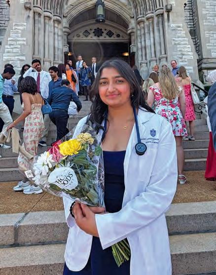 Sachi Sharma reports, “This past May, I graduated summa cum laude from Saint Louis University with a BS in public health and a minor in biology in the University Honors Program. In college, I volunteered at the Cardinal Glennon Children’s Hospital and was a research assistant in a drug and biotherapeutic development lab where I studied FSHD, a type of muscular dystrophy. I also pursued theater and made my stage debut (and finale) back in April. In July, I matriculated into Saint Louis University School of Medicine’s MD Program and got my white coat. I am currently a first-year medical student and am a member of the rock-climbing club and the Musicians in Medicine club where I play guitar. I am also an active member of Take2Tutoring where I tutor incarcerated children at the St. Louis Juvenile Detention Center. Medical school is a challenge and I love learning so many new things about the human body. I’m excited for the next three and a half years as I figure out what specialty I want to go into. I never would have found a lot of my love for science had it not been for the mentors, classes, and Independent Study opportunities at PCDS. I’m still in touch with several of my high school classmates and I’ve loved seeing how all of us have come into our own in the past couple of years.”