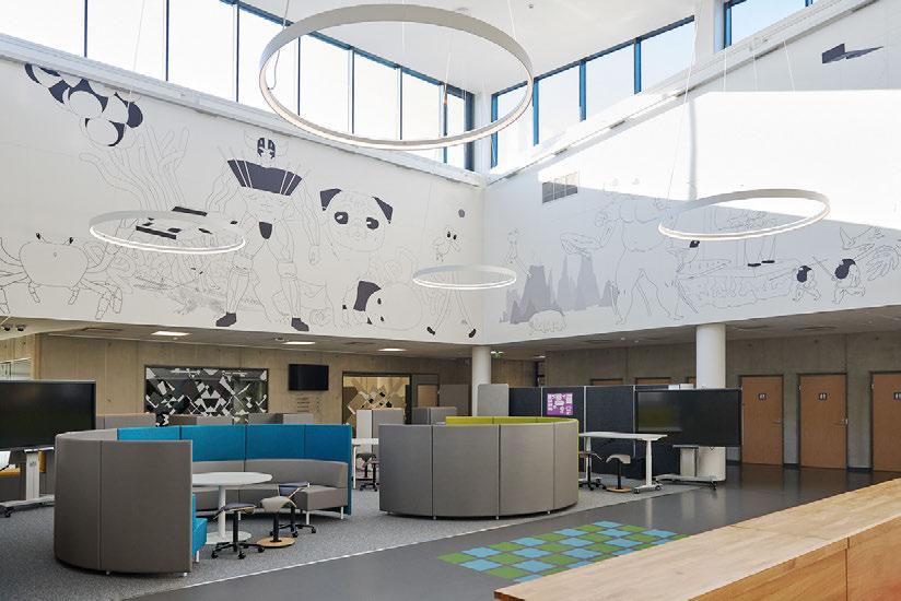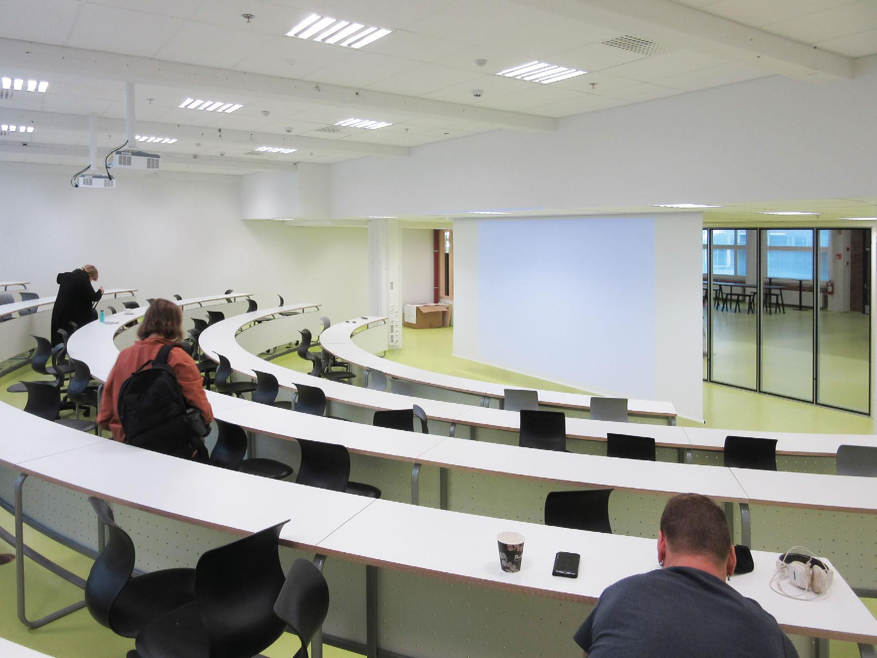 In addition, we also wanted to design a learning environment of the future, where part of the facilities are open space, part more conventional enclosed space. All spaces can be adapted – with the help of walls and curtains – into smaller and larger spaces.