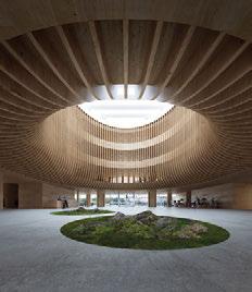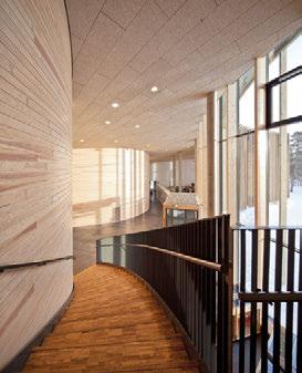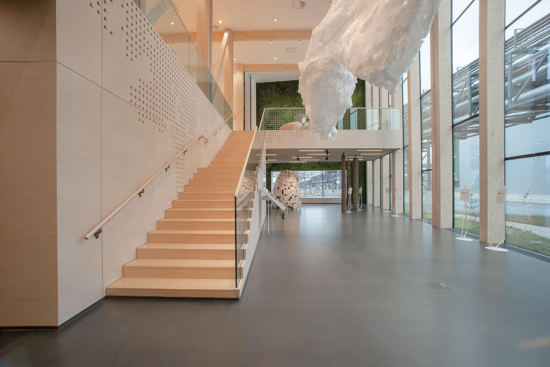 Art plays an important role at Pro Nemus. The first artwork to be placed in the foyer – which is flooded by natural light – was selected via the Art Goes Metsä installation competition, which was organised for the students of Aalto University and Lahti Institute of Design. The winning entry used pulp in its design. The execution of the artwork and building was carried out side by side. At the exhibition space, there is also a temporary, interactive exhibition on sustainable forestry and the opportunities provided by timber materials.
