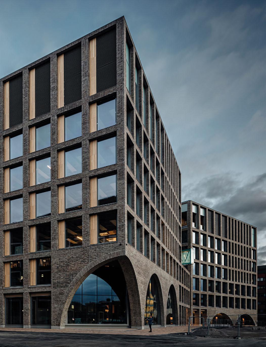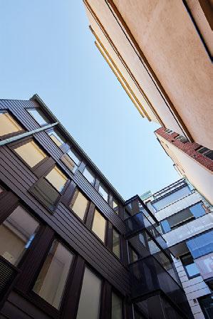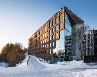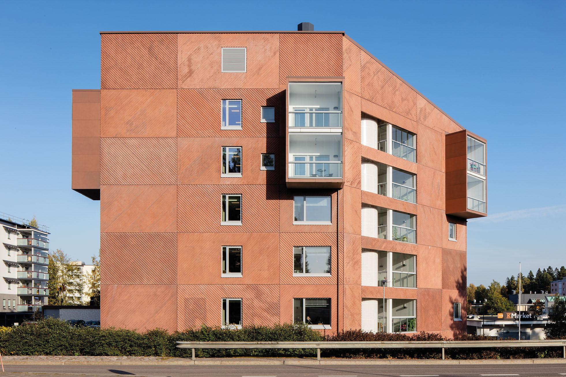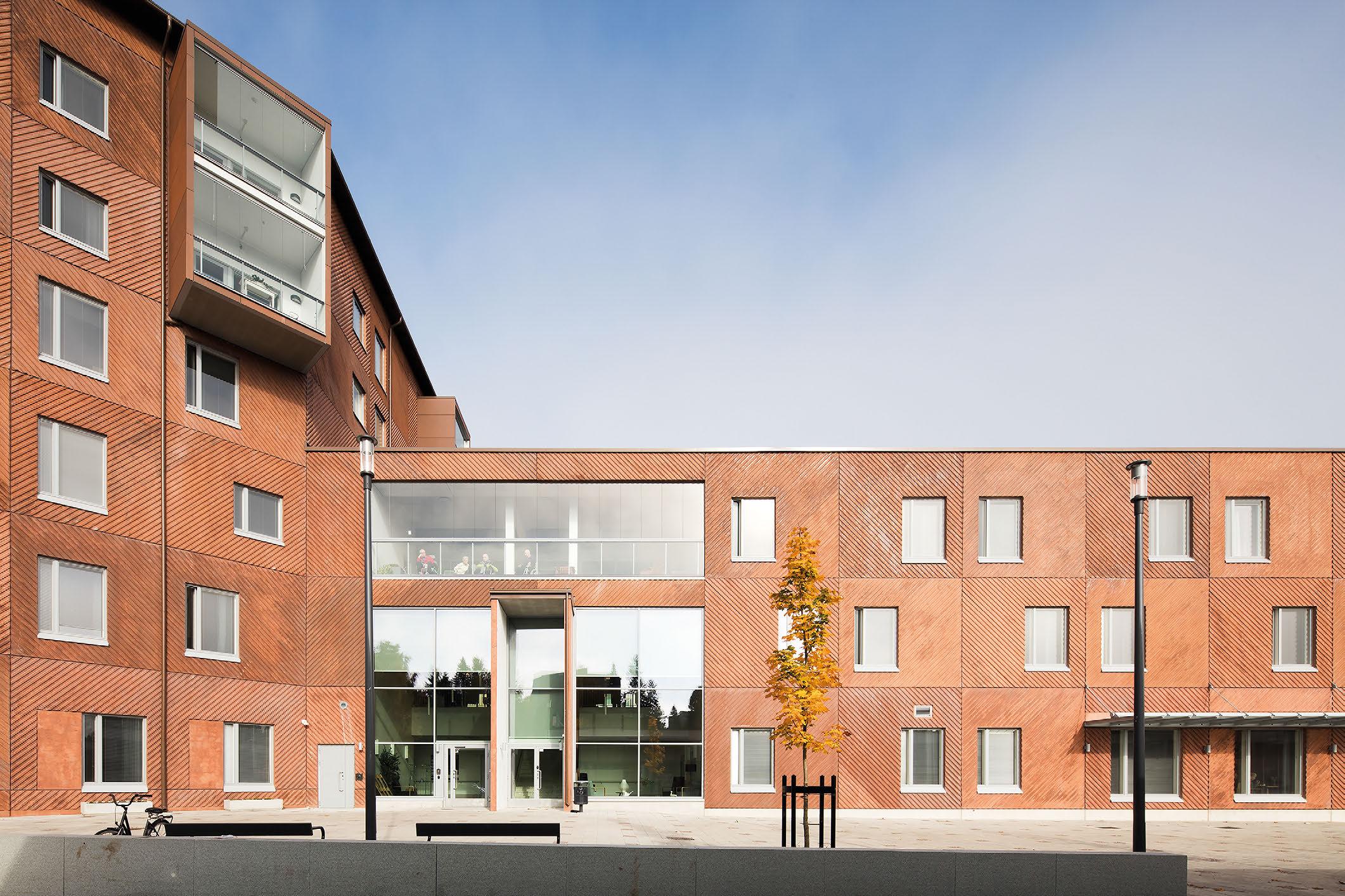 The Aurum building is located in the cultural heritage environment of medieval Turku. As an echo from the past, the facade features the same material in the same tone of colour that was used in the older buildings in the Yliopistonmäki area, but on a different scale.