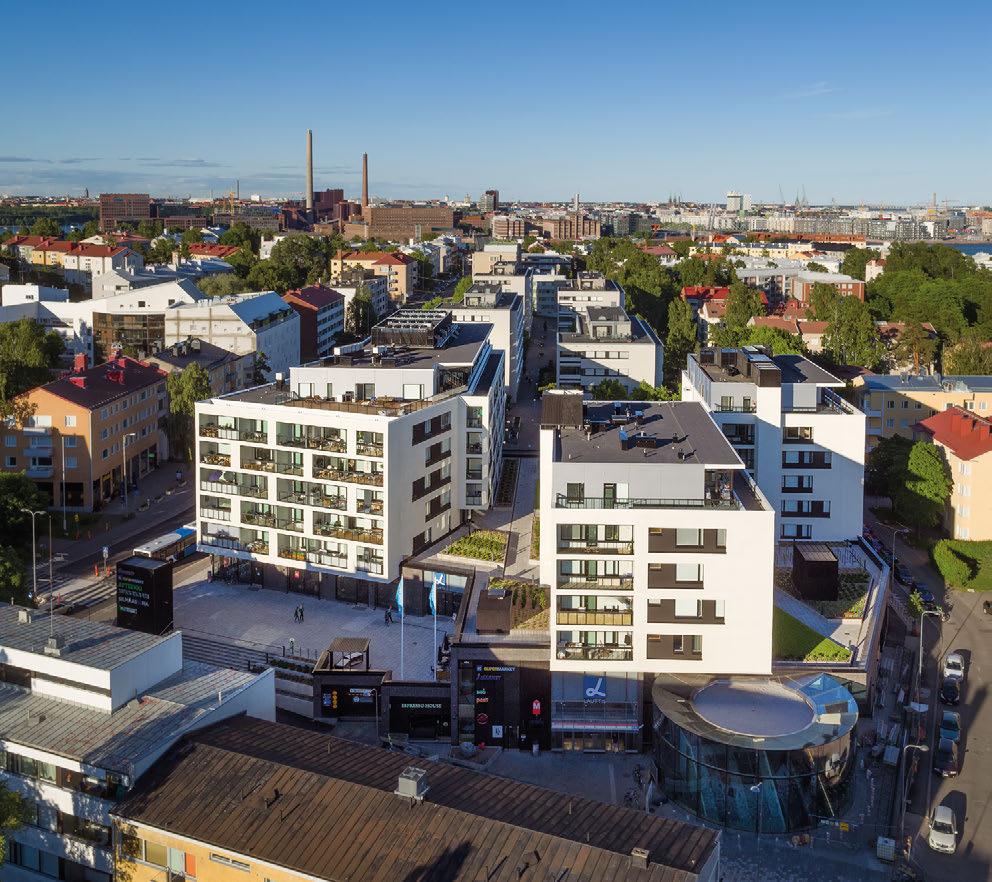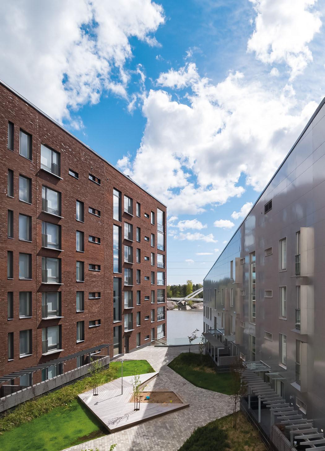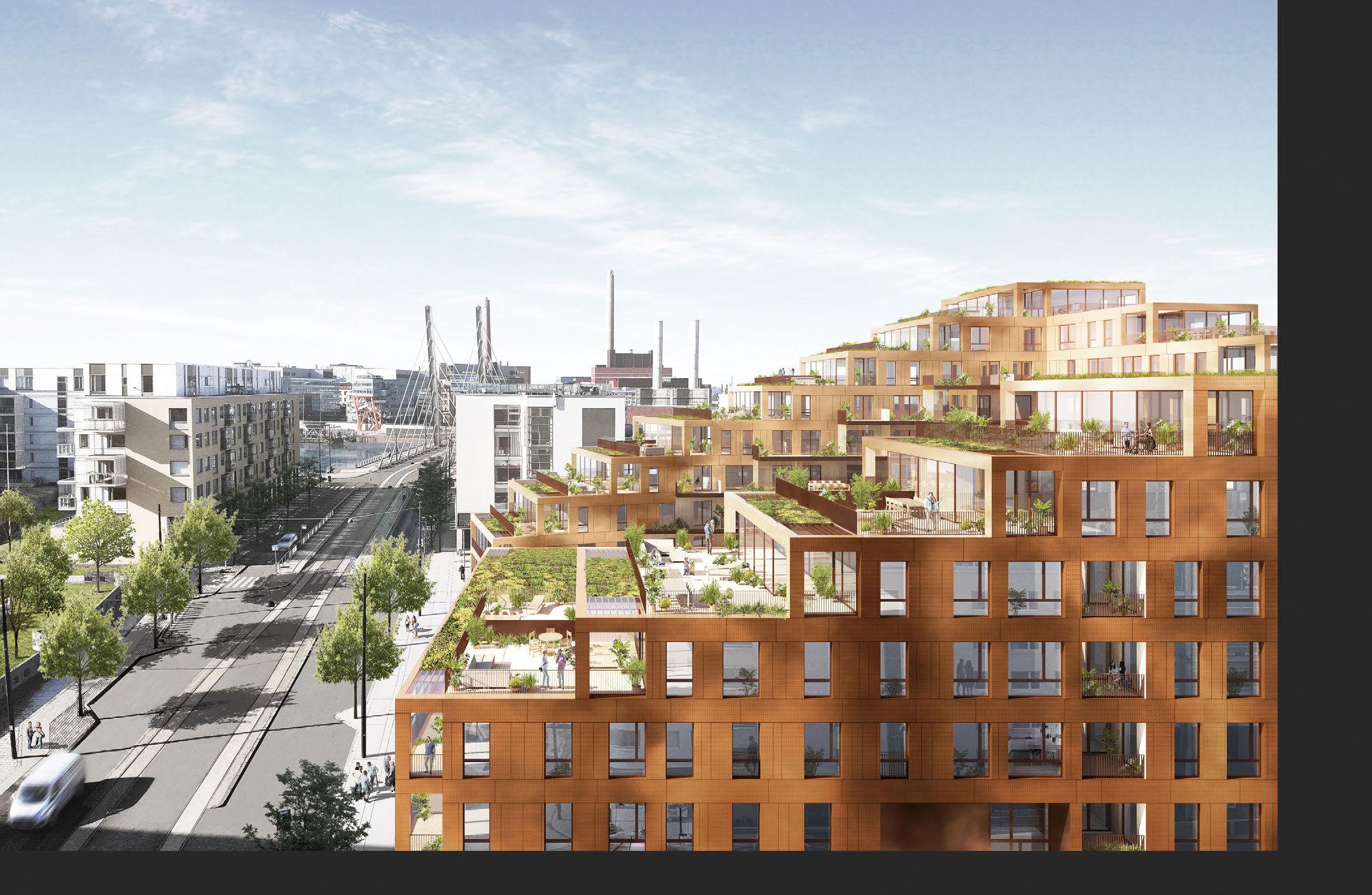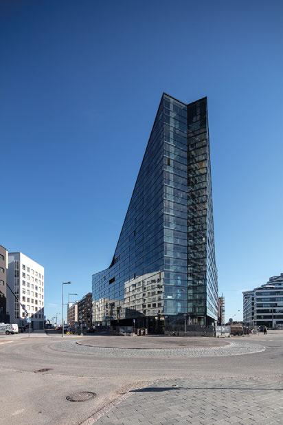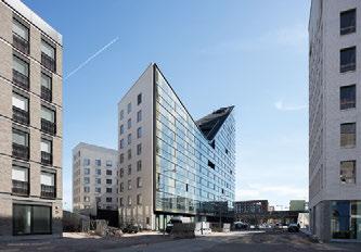 The block is the flagship of Finnish timber construction and has attracted international interest as a fine example of the multitude of ways in which wood can be utilised in construction. The whole merges timeless architecture with sustainable development and an urban sense of community. In addition to the corporate offices, the block also houses two multistorey residential buildings and a hotel.