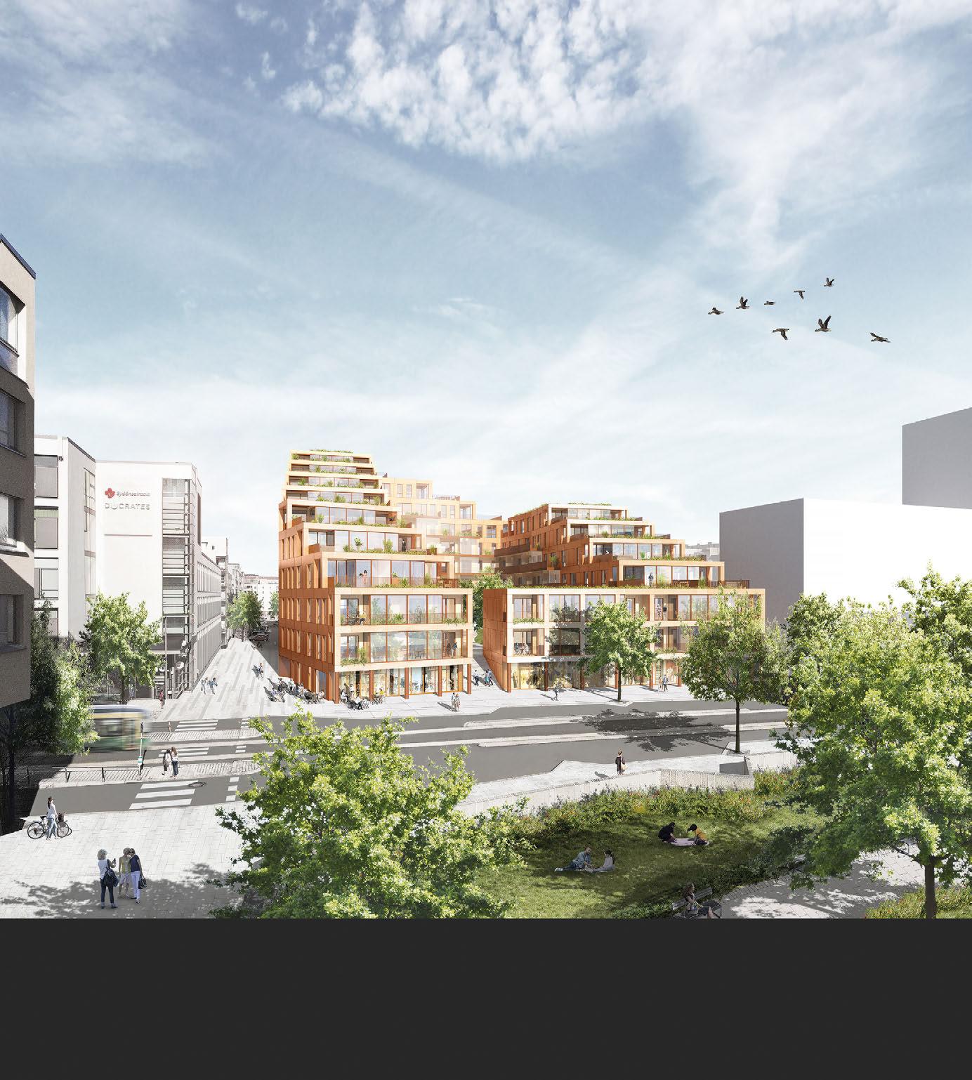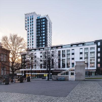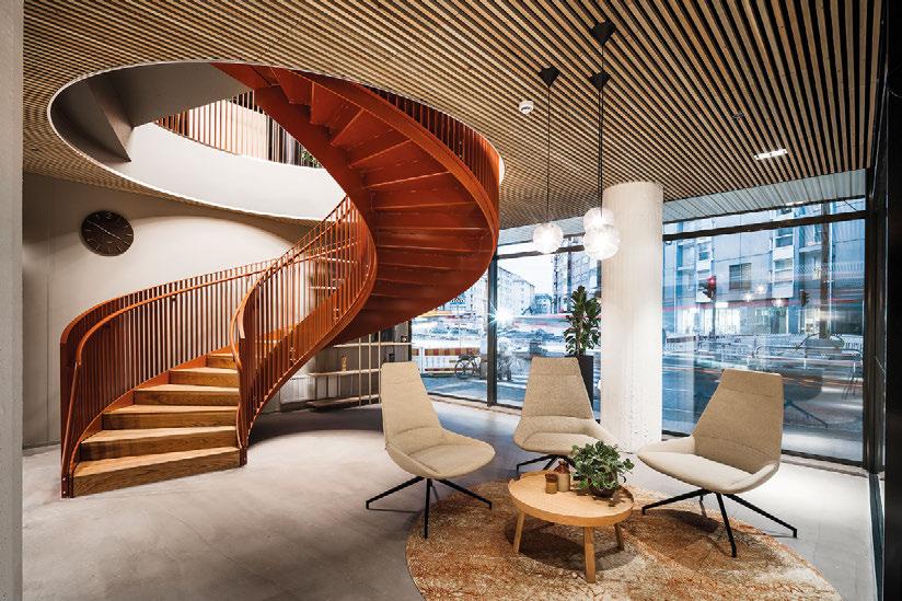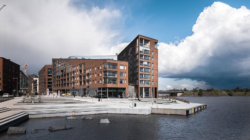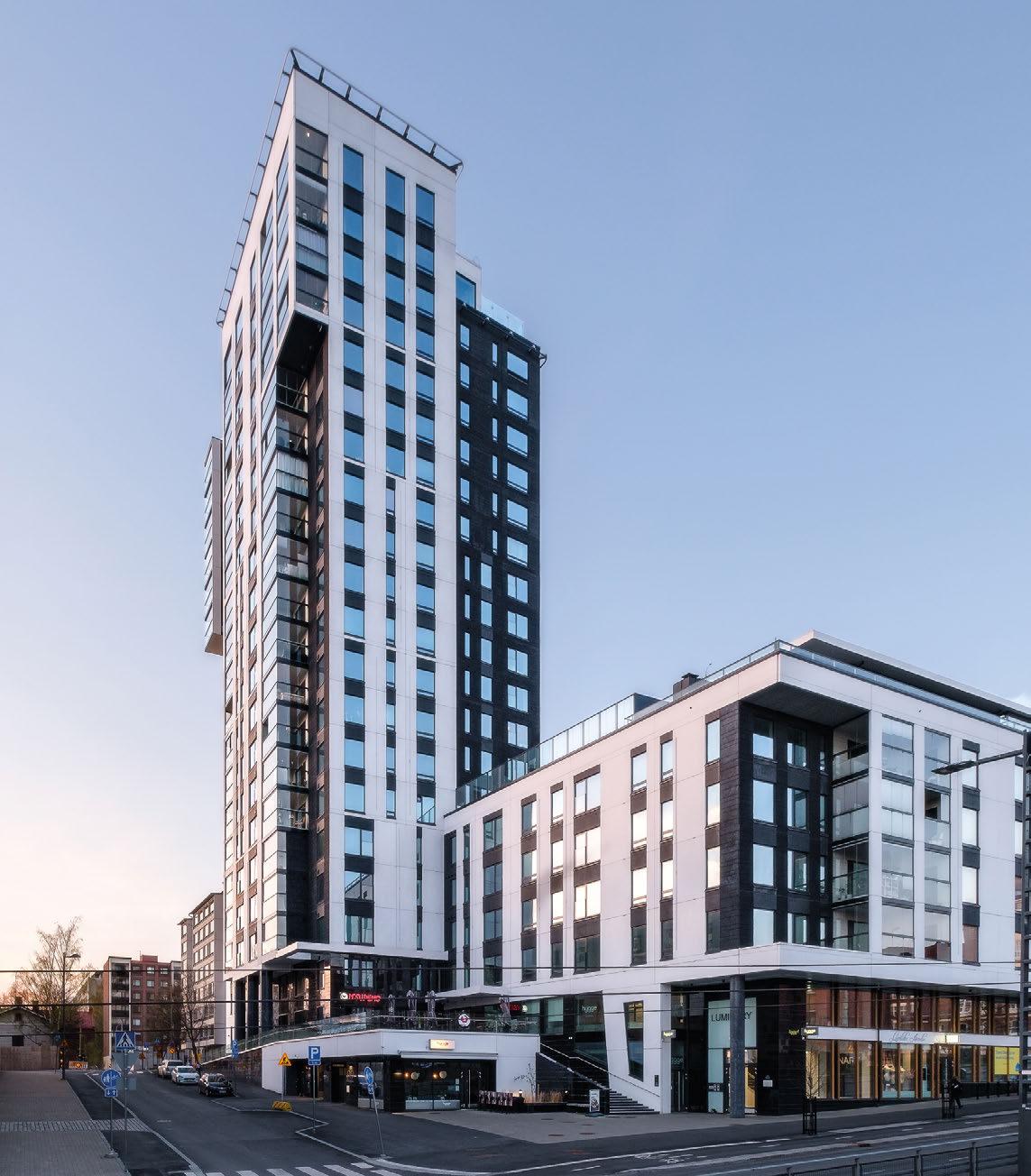 The block is the flagship of Finnish timber construction and has attracted international interest as a fine example of the multitude of ways in which wood can be utilised in construction. The whole merges timeless architecture with sustainable development and an urban sense of community. In addition to the corporate offices, the block also houses two multistorey residential buildings and a hotel.