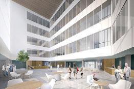 The new buildings are part of a hospital campus that has evolved over several decades, making the area even more densely built. The previously scattered units were brought together, reducing the need for patient transport. One significant change was the removal of parking from the front of the hospital. The underground parking facility now offers direct access to the new main lobby. The yard space that was freed up from parking was transformed into a pleasant and elegant city square. The familiar white is repeated in the colouring of the buildings. In addition, each building has its own identifying colour that also serves as a wayfinding clue.