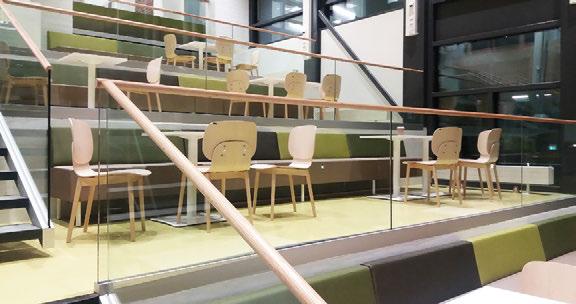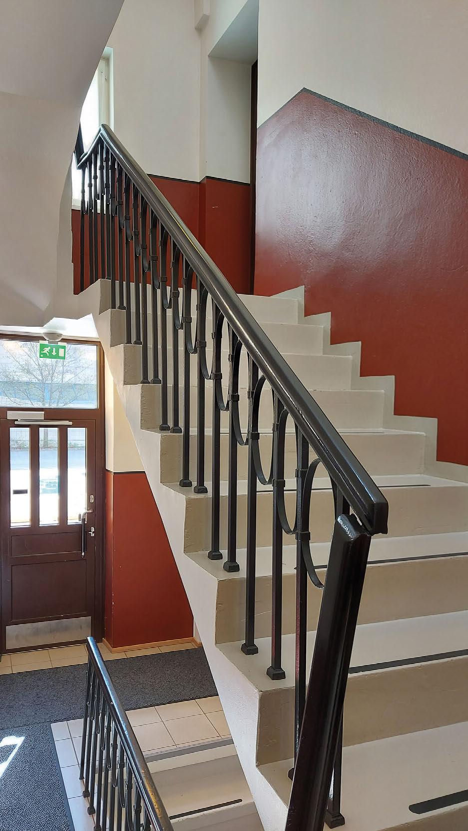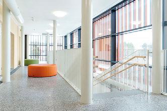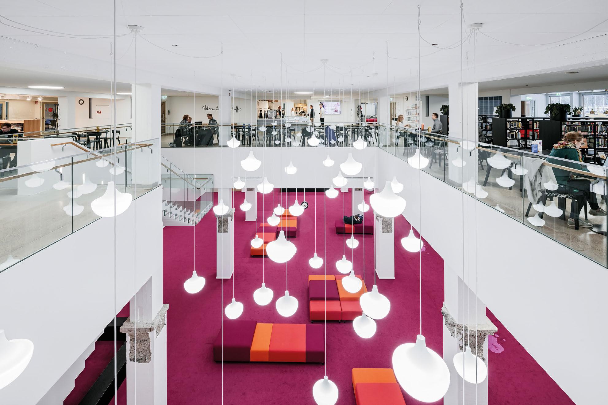 In our design work, we wanted to create a site that combines a higher education institution and the industrial appearance of the area. The finishing touches require precision. Concrete is visible as a structural and aesthetical element. The timber walls create a softer, Scandinavian atmosphere. The colourful floors and textiles bring joy to the facilities.