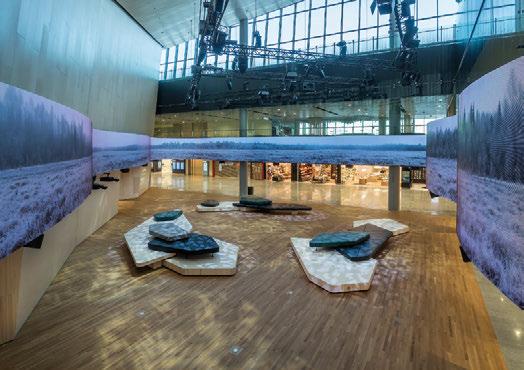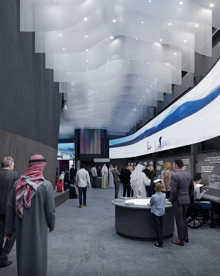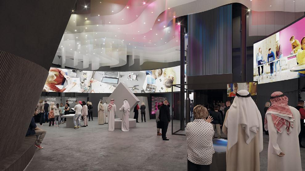 The entrance level is dominated by an open central void surrounded by the main exhibition hall. In the exhibition, Finland will be presented as a destination for business, partnerships, investment opportunities and travel in a sequence of sectors. The latest innovations reside primarily in the corporate world; consequently, technological innovations made by Finnish globally operating companies are a strong element at the exhibition. Finnish nature, travel destinations, education, health & wellbeing, as well as digital solutions, are all incorporated into the comprehensive exhibition of Finland.