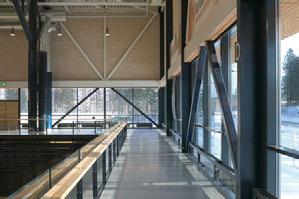 The Energia Areena in Vantaa is a multipurpose arena with a design brief of considering the needs of several user groups, the varied contexts in which the arena is used, as well as a safe and smooth audience traffic. The natural light flooding in through large windows is of great significance in creating the indoor atmosphere. In addition, the windows provide a better view of the activities inside the arena from the outside.