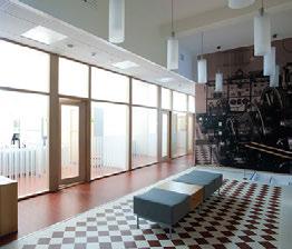 Various kinds of wall paintings and glass graphics were made in order to arrange the interior and orientate the users of the building. They were – together with the interior architects – executed by local children and young people.