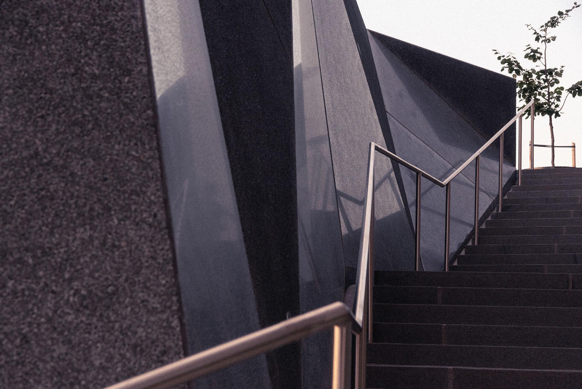 metres high– and the high-polished terrazzo concrete surfaces refer to the cliffs that were located on this site in the past.