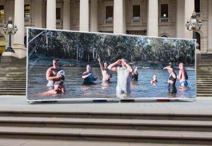 The steps of the Parliament of Victoria was the location for an exhibition of the work of four photographers that are part of the Australian photography group Oculi Collective. In partnership with Parliament of Victoria and the Restart Investment to Sustain and Expand (RISE) Fund, Photo Australia commissioned the photographers to create new work focused on communities in regional Victoria. This also created connections with regional program, as the Oculi Collective presented an ambitious exhibition at Benalla Art Gallery that explored community, memory and connection.